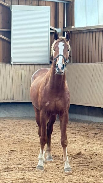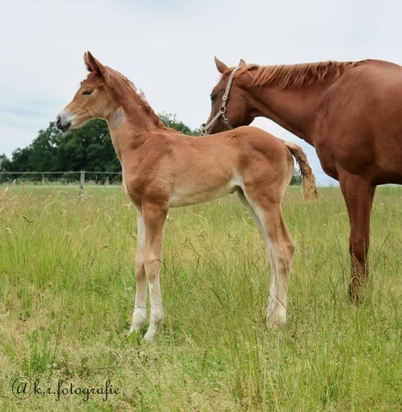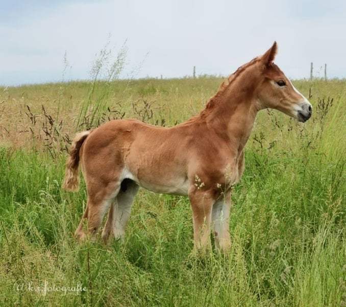 Beautiful young stallion with three excellent basic gaits. Still in full development, he is currently allowed to play with his friends in the pasture. At approximately 1.70 m, but likely to grow even taller. He has not yet been trained and this is only his second time in the arena, as shown in the video. Easy to handle and friendly towards people. He is sure to become a very refined dressage horse. He can be castrated upon request. Due to a minor health issue, he is priced significantly below market value. Further information only available through a personal conversation.