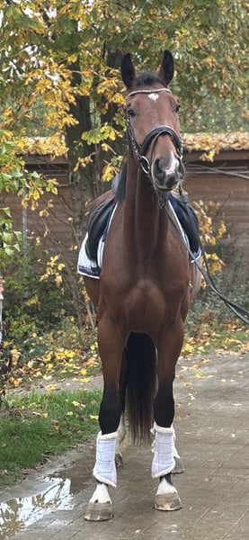 On behalf of the breeder, for sale: A three-year-old gelding by Vidar-Lyjanero out of Accord II. Still in a significant phase of development, he is currently being gently lunged and proves to be very cooperative and talented in this process. He is very people-oriented in handling, well-behaved during farrier visits, and easy to load. He moves powerfully, with a big stride, always in rhythm. X-ray TÜV from January, including the back, with no findings. Toto was born and raised with us and is being sold by his breeder for health reasons. He is currently familiar with a saddle and bridle and is slowly being lunged.