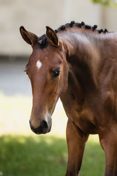 Va Banque is a son of fabulous stallion Va Bene and an amazing black mare Finchen. Va Banque is well build, with a beautiful, noble head and beautiful neck and backline. His leg conformation is also correct. He moves in a light and dynamic way in all three gaits. Va Bene is a very relaxed horse with great mechanics, he has a huge amount of balance in all three basic gaits, which he displays in all performances under saddle. At the end of 2019, he completed a first-class 50-day test with the final score of 8.59 in Schlieckau and is now tested for life. His character showed a great willingness to perform and gave a strong overall impression, he received the grade 9.0. In an impressive year he was ranked second with the rideability 9.25. Va Bene was already victorious in ridden horse tests with top marks (including 9.5 for the canter). In 2021, Va Bene celebrated remarkable sporting successes! He was able to qualify for the 2nd World Championships in Warendorf and immediately for the Bundeschampionat. His nature is so ingenious, he is incredibly trusting and people-oriented. He wants to work with people and you can see he enjoys it.