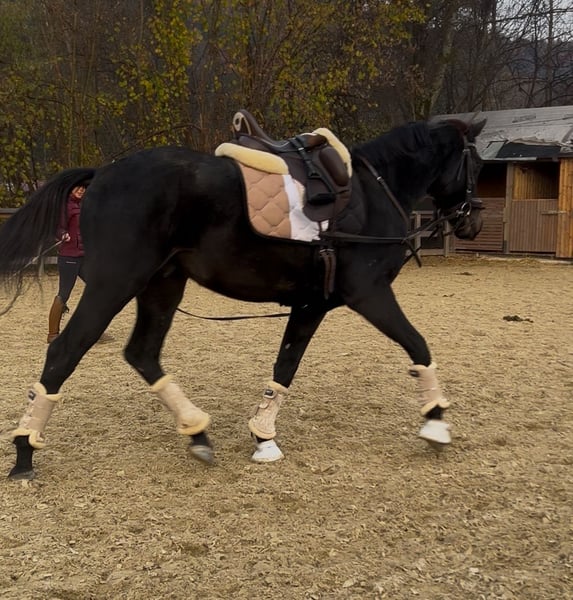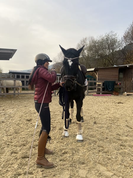 Willi kennt bereits das Reitergewicht und rennt brav an der Longe, er ist sehr lieb im Umgang, kuschelt gerne mit unseren Kindern und ist für sein Alter unerschrocken und ruhig.