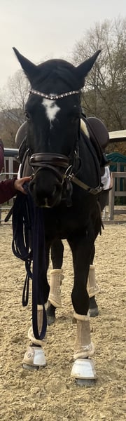 Willi is already familiar with rider weight and walks calmly on a lunge line. He is very gentle in handling, enjoys cuddling with our children, and is fearless and calm for his age.