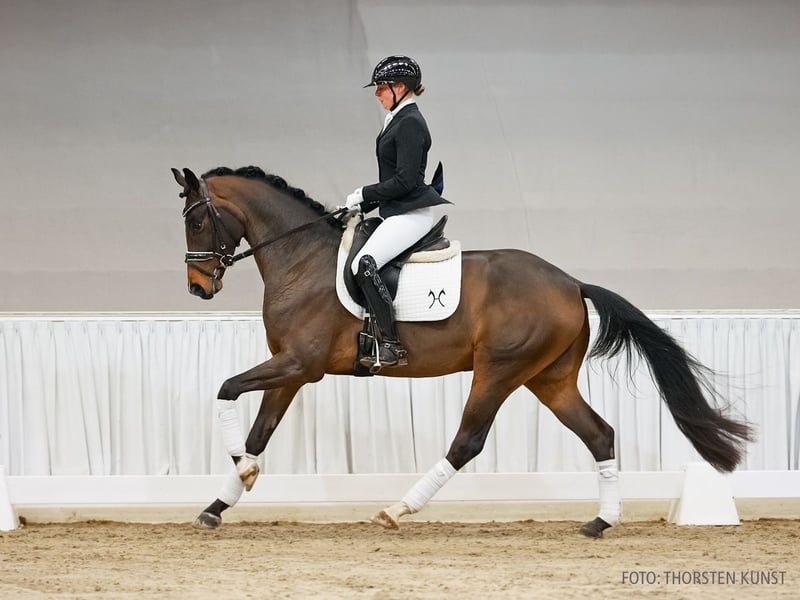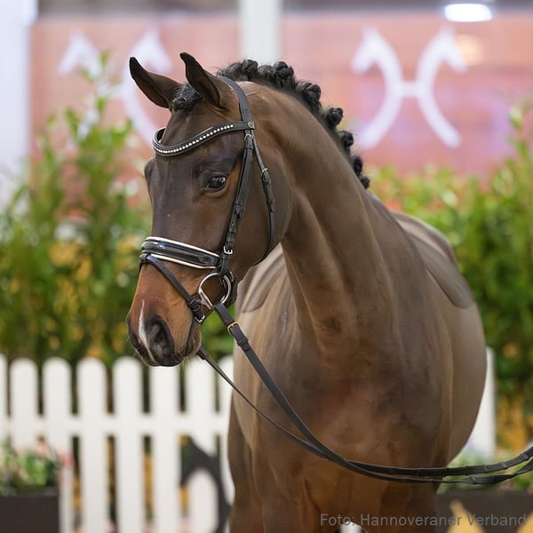 Fiolo präsentiert sich als Dressurofferte mit guter Rittigkeit und komfortablem Reitgefühl, ideal für den gehobenen Sport. Sein Halbbruder Zoom On v. Zoom feiert bereits Erfolge in M-Dressuren unter seiner Reiterin Franca Hartwig. Der Stutenstamm ist geprägt von dem gekörten Hengst Di Caprio v. Davignon I (DRE: Grand Prix mit Bärbel Eppinger) und den Spitzensportlern Don Vittorio v. Donnerhall (DRE: Grand Prix mit Michael Klimke) und Ropeter v. Rosentau (DRE: international S** mit Kevin Herold). 1. Generation Sportpferde Dressur: Zoom on v. Zoom (DRE: M* mit Franca Hartwig). Bes. Prämientöchter: HannPrA Zoey B Cool v. Zoom; HannPr Frida Negra/Frida B v. Fürst Nymphenburg. 2. Generation Auktionspferde: Dada le Fou v. Del Piero (VA 2005). 3. Generation Sportpferde Dressur: gek. Hengst Di Caprio/Di Caprio 8 v. Davignon I (DRE: Grand Prix mit Bärbel Eppinger,Dressurprüfung Kl. S*** - Grand Prix Special - 2009,Dressurprüfung Kl.S**** - Grand Prix Kür - 2008,Dressurprüfung Kl. S*** - Grand Prix Kür - 2008,Dressurprüfung Kl. S*** - Grand Prix de Dressage 2008,Dressurprüfung Kl. S*** - Grand Prix Special - 2008,Dressurprüfung Kl. S*** - Grand Prix de Dressage 2008,Dressurprüfung Kl. S- Grand Prix Special - 2007,Dressurprüfung Kl. S- Grand Prix Special - 2007,Dressurprüfung Kl. S- Grand Prix de Dressage 2007,Dressurprüfung Kl. S- Grand Prix Special - 2007,Dressurprüfung Kl. S- Grand Prix Kür - 2006,Verden 1998); Don Vittorio v. Donnerhall (DRE: Grand Prix mit Klimke,Michael,VA 1994: 50.000 €); Ropeter v. Rosentau (DRE: int. S** mit Kevin Herold,Deutsche Meisterschaft Junge Reiter Dressur 2015,Deutsche Meisterschaft Junioren Dressur 2012,VA 2005); Donar B v. Donnerhall (DRE: M mit Voigt,Bernd Joachim,FoVA 1992). Sportpferde Springen: Orvin v. Ogano (SPR: 1,30 m mit Reinhard Lütke Harmann); Diacontina/Diacontina 4 v. Diacontinus (SPR: 1,30 m mit Nicole Birnfeld); Quanda 4 v. Quality (SPR: 1,30 m mit Maite Hansjosten); Lacantha v. Lacantus (SPR: 1,30 m mit Laura Stein); Espania 15 v. Escudo II (SPR: 1,30 m mit Stefanie Förster). Aufbauprüfungen Springen: HannPr Devjani v. Diacontinus (SPR: 1,30 m mit Reinhard Lütke Harmann); Dynasty 24 v. Diacontinus (SPR: 1,30 m mit Reinhard Lütke Harmann); Comteur v. Comte (SPR: 1,30 m mit Sylvio Gleitsmann); Aniello v. A Jungle Prince (SPR: M mit Bauhofer,Marc); Leonidas 106 v. Laptop (SPR: L). gekörte Hengste: gek. Hengst Conccello v. Cornet Obolensky (Windows v.h.Costersv.) (Hoftermin 2025). Auktionspferde: Rubin Roi v. Rosentau (VA 2003); Prachtvolle/Prachtvoll v. Pik Senior (FoVA 1986). Bes. Prämientöchter: HannPr Vivien v. Uccello; StPr Clara v. Comte (Herwart von der Decken-Schau Verden 2011); StPr Pina v. Pik Senior; StPr Rike v. Raphael; StPr Pirko v. Pik Senior; StPr Perdita v. Pik Senior (Ratje Niebuhr-Schau Verden 1988). 4. Generation Aufbauprüfungen Springen: MARIO 67 v. Matrose (SPR: L,FoVA 1979). Auktionspferde: Dany v. Dynamo (FoVA 1984); Gitana/Gitana 30 v. Gralsritter (FoVA 1977). Mutter: Dana ZL: 13/9 ZSP: Feldprüfung Reitpferd - Trab 6,00 Galopp 7,00 Schritt 6,00 / Durchschnitt Rittigkeit 6,50 / Durchschnitt Springen 6,50 Großmutter: Pina Prämierung: 1xIa. ZL: 15/8 ZSP: Feldprüfung Reitpferd - Trab 7,00 Galopp 7,00 Schritt 6,00 / Durchschnitt Rittigkeit 7,00 / Durchschnitt Springen 5,50 Das Pferd ist ein Verdener Auktionspferd und wird am 25.01.2026 online versteigert. Vom 12.01. bis zum 25.01. kann das Pferd jeden Tag beim öffentlichen Training besichtigt und ausprobiert werden. Das Startgebot bei der Versteigerung ist 8.000 Euro.
