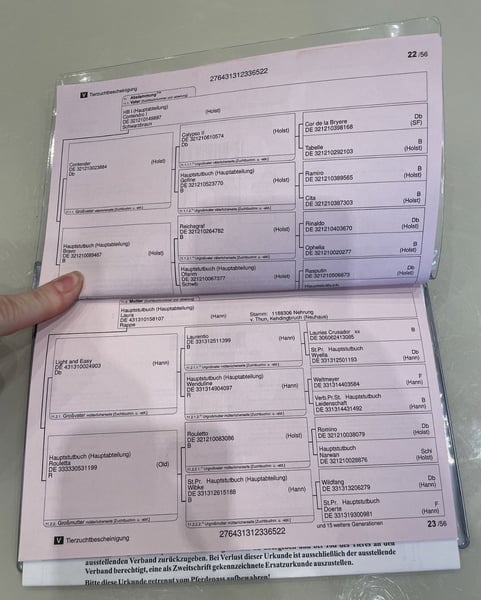 Cadeau – Wallach mit Spitzenabstammung und Herz aus Gold Zum Verkauf steht der bildschöne 3-jährige Wallach Cadeau, der mit exzellenter Abstammung, moderner Sportpferdeoptik und einem außergewöhnlich angenehmen Charakter überzeugt. Abstammung: Contendro I x Laura x Laurentio Mit Contendro I als Vater – einem der bedeutendsten Vererber internationaler Spring- und Vielseitigkeitspferde – bringt Cadeau beste sportliche Voraussetzungen mit. Auch dressurmäßig glänzt sein Pedigree mit Namen wie Light and Easy, Laurentio und Weltmeyer. ➡️ Stammbaum siehe Fotos. Cadeau präsentiert sich in edler schwarzbrauner Jacke, mit einem aktuellen Stockmaß von ca. 1,65 m und einem harmonischen, modernen Exterieur. Er wurde mit drei Jahren kastriert und konnte sich dadurch körperlich besonders gleichmäßig und gesund entwickeln. Er verfügt über drei gute Grundgangarten und überzeugt vor allem durch seine hervorragende Arbeitseinstellung: Cadeau arbeitet stets motiviert, aufmerksam und brav mit. Aufgrund seines verlässlichen Wesens darf auch unsere 9-jährige Tochter viel mit ihm machen – von Freiarbeit über Longieren bis hin zu Verladen und Reiten. Als typisches Jungpferd bringt er eigene Ideen mit, ist dabei jedoch fein ansprechbar, gut führbar und sehr lernwillig. Klare, faire Führung akzeptiert er problemlos und entscheidet sich immer für die Mitarbeit. Die Arbeit mit ihm macht einfach unglaublich viel Freude. Charakterlich zeigt sich Cadeau: • nervenstark • zuverlässig • unkompliziert Er ist brav beim Schmied und Tierarzt, lässt sich problemlos verladen und bleibt auch im Gelände stets ruhig und gelassen. Unbekannte Dinge werden neugierig und entspannt mit dem Maul erkundet. Auch im Freispringen kann Cadeau bereits überzeugen: selbstsicher, konzentriert und mit viel Übersicht meistert er die Sprünge – ein weiteres Zeichen für seine sportliche Perspektive. Cadeau kennt sowohl 24/7-Weidehaltung als auch Boxenhaltung im Winter auf unserem kleinen landwirtschaftlichen Betrieb. Dort ist er verschiedenste Maschinen, Geräusche und Tiere gewohnt und entsprechend abgeklärt. Ein rundum talentierter Youngster mit bestem Interieur, ideal für Reiter, die ein Pferd mit Perspektive für den gehobenen Sport suchen – und gleichzeitig einen verlässlichen, freundlichen und nervenstarken Partner für Freizeit und Ausbildung. Verkauf schweren Herzens und AUSSCHLIESSLICH aufgrund meiner gesundheitlichen Situation. Gerne erzähle ich dazu mehr im persönlichen Gespräch.