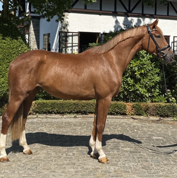 Zum Verkauf steht ein wunderschöner Hannoveraner Wallach, geboren im Jahr 2022. Mit seinem strahlenden Fuchs-Fell und einem Stockmaß von 167 cm ist er ein echter Blickfang. Dieser talentierte Wallach zeigt großes Potenzial im Dressursport, ein vielversprechendes Pferd für die Zukunft . Er ist gut erzogen, brav im Umgang und zeigt eine angenehme, lernwillige Art. Sein freundliches Wesen und seine hohe Leistungsbereitschaft machen ihn zu einem idealen Partner. Bei Interesse oder für weitere Informationen kontaktieren Sie mich bitte. Lassen Sie sich diese Gelegenheit nicht entgehen, einen so vielversprechenden Pferdepartner zu finden! +4915204371144