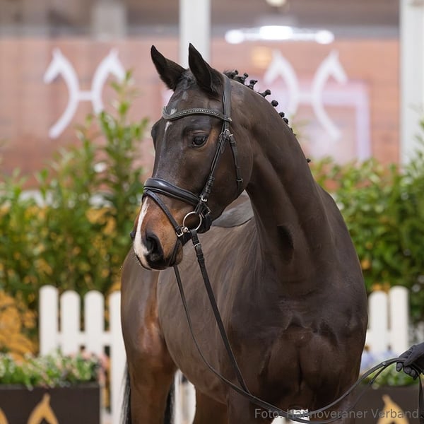 Ferrari ZR zeigt hochinteressante Bewegungsansätze und besticht als körperlich noch junge, aber äußerst elegante und blutgeprägte Dressurremonte mit großem Potenzial. Aus dem Stutenstamm gehen namhafte Sportpferde wie Lord Lupo v. Longchamp (DRE: S** mit Annette Alda), Silverlining v. Sarotti Mokka Sahne (DRE: M* mit Antonia Böhm) und Hyops v. Hochadel (DRE: M* mit Tristan Theissel) hervor. 1. Generation Auktionspferde: First Kiss Majishan/Fräulein Tiffany ZR v. Fürsten-Look (VA 2023); Floris Dream ZR v. Floriscount (VA 2020). 2. Generation Auktionspferde: Washington v. Weltmeyer (VA 2015); Franciska v. Fabriano (VA 2007). Bes. Prämientöchter: StPr Wakonda v. Weltmeyer. 3. Generation Sportpferde Dressur: Lord Lupo 5 v. Longchamp (DRE: S** mit Annette Alda); Silverlining v. Sarotti Mokka Sahne (DRE: M* mit Antonia Böhm); Hyops v. Hochadel (DRE: M* mit Tristan Theissel). Aufbauprüfungen Dressur: Del Corazon/Del Corazon 3 v. Desperados (DRE: L). Auktionspferde: Byron Bay S v. Bon Coeur (FoVA 2022); Blackberry v. Buckingham (FoVA 2015); Waldorchidee v. Waldstar (FoVA 1999). Bes. Prämientöchter: HannPr Doris/Dualipa 3 v. Dohnanyi; HannPr Quitschfidel/Quietschfidel 8 v. Quaterhall. 4. Generation Sportpferde Dressur: Grand Canyon 24 v. Grand Cru (DRE: Grand Prix mit Tom Berg,Dressurprüfung Kl. S- Grand Prix Special - 2006,Dressurprüfung - Gr.Prix Kür Int. 2004,Dressurprüfung - Grand Prix Special 2004,Dressurprüfung - Grand Prix 2004,Dressurprüfung - Grand Prix Special 2004,Dressurprüfung - Grand Prix 2004,Dressurprüfung - Grand Prix 2004,Dressurprüfung - Grand Prix 2004,Dressurprüfung - Grand Prix 2004,Dressurprüfung - Grand Prix 2004,Dressurprüfung - Gr.Prix Kür Int. 2004,Dressurprüfung - Grand Prix 2004,Dressurprüfung - Grand Prix 2004,Dressurprüfung - Grand Prix Special 2003,Dressurprüfung - Grand Prix 2003,Dressurprüfung - Gr.Prix Kür Int. 2003,Dressurprüfung - Grand Prix 2003,Dressurprüfung - Grand Prix 2003,Bundeschampionat f.Reitpferde o.M. 1998,Championat für Reitpferde m.M. 1998); Way Of Live 2 v. Westbury (DRE: M mit Spinnraths,Nicole). 5. Generation Aufbauprüfungen Dressur: Santana 143 v. Saloniki (DRE: L). Aufbauprüfungen Springen: SIR HANNES v. Saloniki (SPR: L). Auktionspferde: Salomon/Salomon 13 v. Saloniki (HM 1979). Mutter: Wakonda Prämierung: 1xIa. ZL: 10/9 ZSP: Feldprüfung Reitpferd - Trab 7,00 Galopp 6,50 Schritt 6,50 / Durchschnitt Rittigkeit 8,00 / Durchschnitt Springen 6,25 Großmutter: Waldorchidee ZL: 7/6 ZSP: Feldprüfung Reitpferd - Trab 6,00 Galopp 7,00 Schritt 7,00 / Durchschnitt Rittigkeit 6,50 / Durchschnitt Springen 8,00 Das Pferd ist ein Verdener Auktionspferd und wird am 25.01.2026 online versteigert. Vom 12.01. bis zum 25.01. kann das Pferd jeden Tag beim öffentlichen Training besichtigt und ausprobiert werden. Das Startgebot bei der Versteigerung ist 8.000 Euro.
