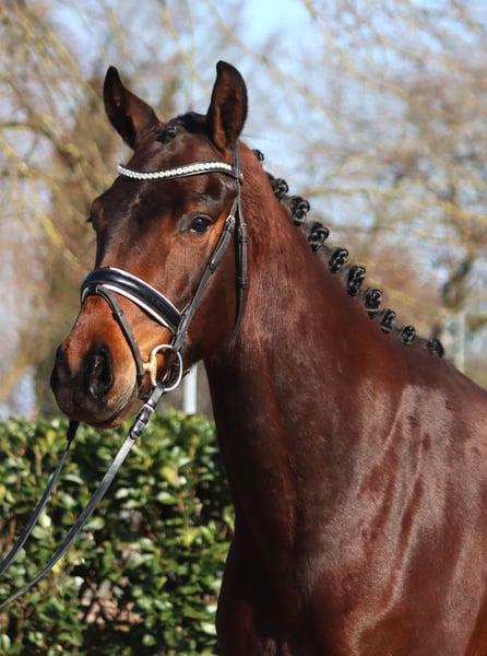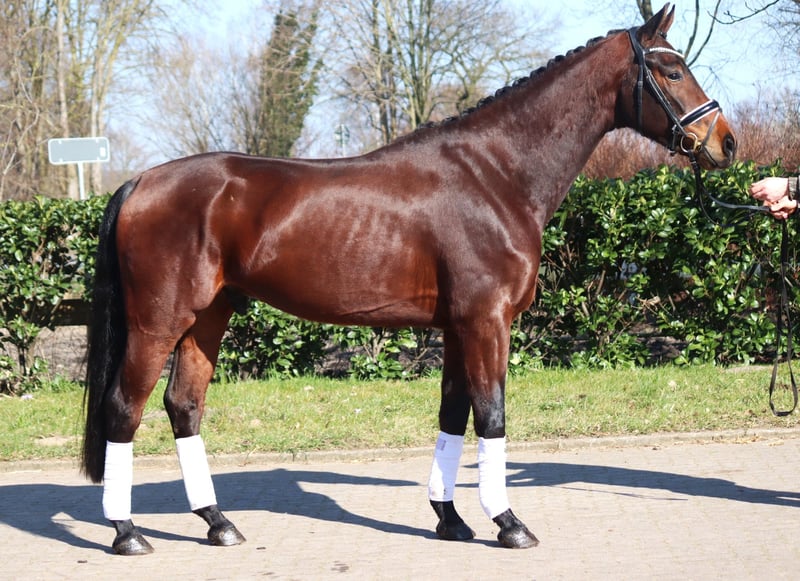 Sympatyczny 3-letni wałach po Vitalis x Fürstenball, z trzema dobrymi podstawowymi chodami. Jest bardzo grzeczny w obcowaniu, obecnie jeszcze nie jest dosiadany. Ze względu na swoje pochodzenie z pewnością ma dobrą zdolność do jazdy i talent do dużego prostokąta. Cena plus VAT. Zapytania tylko telefonicznie, e-maile nie będą odpowiadane.