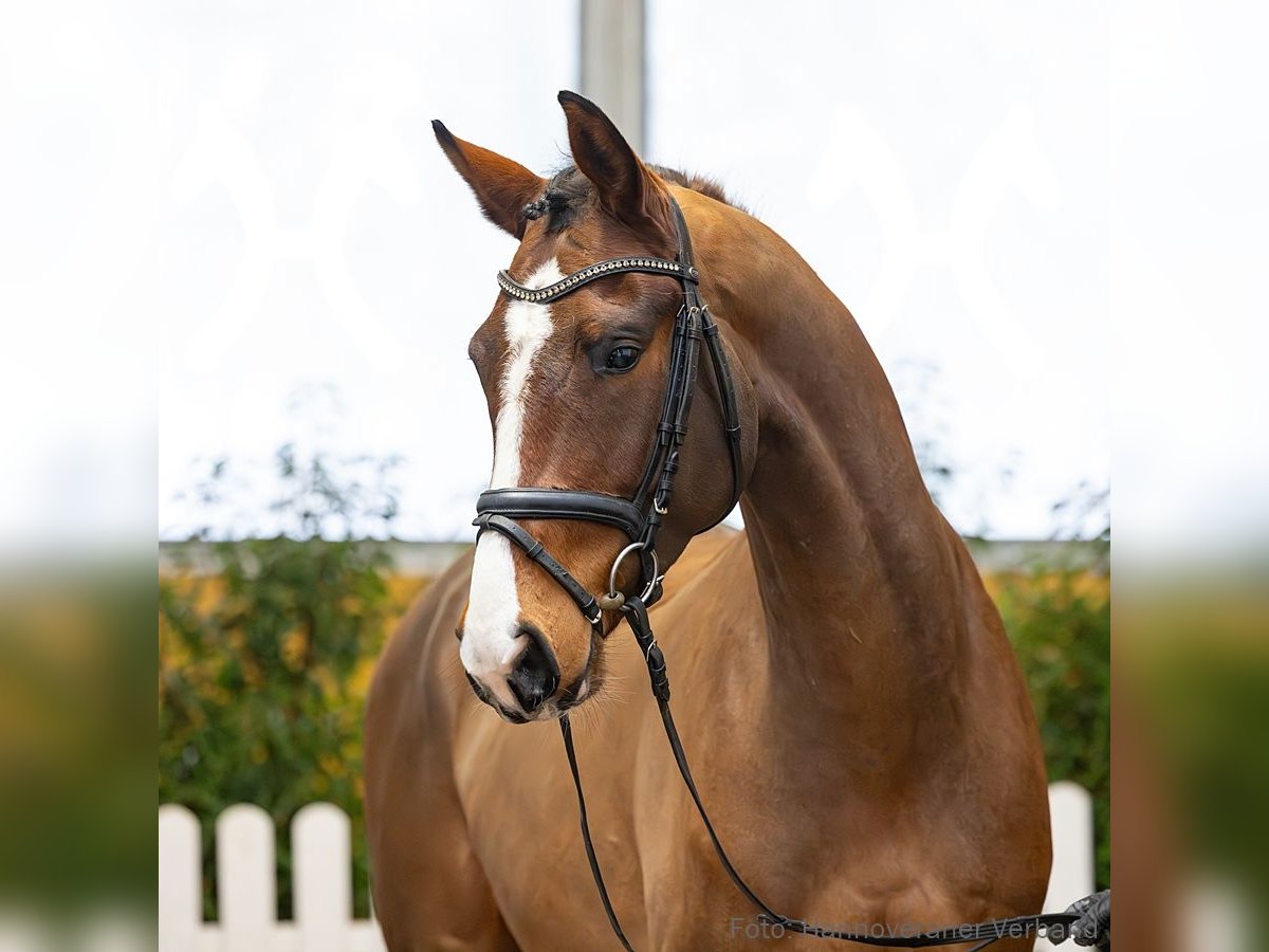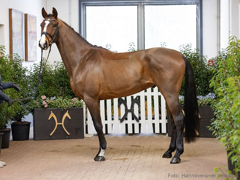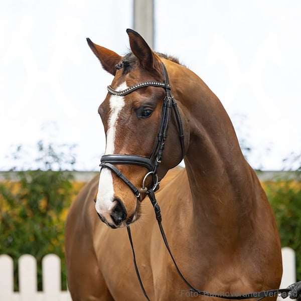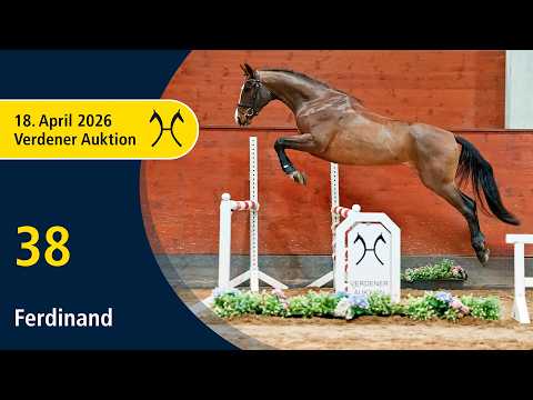 Das Pferd ist ein Verdener Auktionspferd und wird am 18.04.2026 onlive versteigert. Vom 6.04. bis zum 18.04. kann das Pferd jeden Tag beim öffentlichen Training besichtigt und ausprobiert werden. Das Startgebot bei der Versteigerung ist 8.000 Euro. Ferdinand ist ein junger Springsportler mit schnellen Reflexen, guten Abläufen und ausgezeichneter Bascule – noch jugendlich, aber mit großem Potenzial. Sein Halbbruder F-Red Bull ist mit Sabrina Fehst siegreich in S-Springen, seine Halbschwester Stacy erfolgreich in M-Springen. Erfolgreiche Sportpferde und gekörte Hengste prägen den Mutterstamm: Zouzo Majishan (S* mit Malin Wahlkamp-Nilsson), Shalom (1,40 m mit Angel Dinev Nyagolov, FoVA 2014) und Et Voila (1,35 m mit Marie Specht, FoVA 2006). 1. Generation Sportpferde Springen: F- Red Bull v. Flic Flac (SPR: 1,40 m mit Sabrina Fehst); Shalom 177 v. Sandokan LGST (SPR: 1,40 m mit Angel Dinev Nyagolov,FoVA 2014); HannPrA Stacy/Stacy 24 v. Stakkato (SPR: 1,30 m mit Kira Gremme). Aufbauprüfungen Springen: Quinet 3 v. Qualito I (SPR: L,VA 2018). Auktionspferde: Valesca v. Valensky (FoVA 2023); Vito v. Valensky (FoVA 2022); Viscada v. Viscount (FoVA 2021); Quickly v. Qualito I (FoVA 2019); Voyage v. Viscount (VA 2017); Gabbana v. Graf Top (FoVA 2013). Bes. Prämientöchter: HannPrA Virginia v. Varihoka du Temple; HannPrA Vespa v. Viscerado (Herwart von der Decken-Schau Verden 2023). 2. Generation Sportpferde Dressur: gek. Hengst Zouzo Majishan/Zouzo v. Zack (DRE: S* mit Malin Wahlkamp-Nilsson,Verden 2017,VA 2019: 165.000 €). Sportpferde Springen: Et Voila 5 v. Escudo I (SPR: 1,35 m mit Marie Specht,FoVA 2006); Quantolito- D v. Qualito I (SPR: 1,30 m mit Hermine Elisabeth Buchwald); Sunshine II/Sweet Miss Annie v. Salito (SPR: 1,30 m mit Annemarie Stoye). Aufbauprüfungen Dressur: Nymphenburgs Teamplayer v. Total Hope (DRE: L). Aufbauprüfungen Springen: Sacree Fleur 3 v. Stolzenberg (SPR: L). gekörte Hengste: gek. Hengst ZZ Top/Zucchero v. Zoom (Redefin 2024,FoVA 2022); gek. Hengst Verstappen GS v. V-Plus (Verden 2024,FoVA 2021). Auktionspferde: Donovan v. Da Costa (VA 2024); Dressur Pur v. D'Olympus (FoVA 2019); Zurrino v. Zack (VA 2021); Pulsar 4 v. Perigueux (VA 2012). 3. Generation Aufbauprüfungen Dressur: Guiness/Gia la Grande 2 v. Grosso Z (DRE: L). Bes. Prämientöchter: StPrA Welshanti v. Welser. 4. Generation Sportpferde Dressur: Bartholdy Z v. Bolschoi (DRE: S** mit Marita Pöschl). Auktionspferde: Elias 2 v. Einblick (VA 1981). Mutter: Escada Prämierung: 1xIa. ZL: 16/15 ZSP: Feldprüfung Reitpferd - Trab 7,00 Galopp 7,00 Schritt 7,00 / Durchschnitt Rittigkeit 7,25 / Durchschnitt Springen 7,50 Großmutter: Roxette ZL: 17/14 ZSP: Stationsprüfung Reitpferd - Trab 7,00 Galopp 7,50 Schritt 7,00 ø Durchschnitt Rittigkeit 7,33 / ø Durchschnitt Springen 6,25