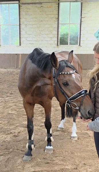 Cedrik ist ein sehr hübscher und nervenstarker Wallach mit toller vielseitiger Veranlagung. Er ist sehr rittig, mit guten Bewegungen ausgestattet und abstammungsgemäß natürlich viel Potential am Sprung. Beim Freispringen kann er mit viel Mut und Vermögen überzeugen. Er springt in schöner Manier, vorsichtig und mit viel Übersicht. Auch unter dem Reiter kann er dies umsetzen. Er springt bereits einen Parcours unter dem Reiter und wir hatten ihn gerade zu einem ersten Trainingsturnier mit. Hier lief er gleich eine fehlerfreie Runde und war fast genauso cool wie Zuhause. Dabei ist er angenehm ehrgeizig und hat Spaß an der Sache. Verladen, der ganze Umgang etc waren auch top. Ein Pferd, das in der täglichen Arbeit einfach Freude bereitet und vielseitig einsetzbar ist. Er wird hier auch problemlos ins Gelände geritten. Sein Charakter und sein Format machen den charmanten Cedrik zu einem tollen Mädchen - / Damenreitpferd mit Potential für höhere Klassen. Sein Bruder ist zB schon 1.40 m platziert. Aber auch als Partner für anspruchsvollen Freizeitreiter, in der Dressur oder sogar in der VS kann man ihn sich vorstellen. Er verträgt sich bestens auch mit anderen Pferden und ist täglich mit diesen auf dem Paddock. Einfach ein Pferd , wie man es sich nur wünschen kann. 4j Hann Wallach, 1.68m Cabo Verde (Christian ) x Calato x Corrado Gute Röntgenbilder und Klinische Aku liegen vor Video: https://youtu.be/OdXWvmmOg88?si=Bggi4g3Jm1sclyR9 https://youtu.be/48i5RBrefq4?si=vIT62hQOLHQOmXWK „Videos, Trainingsausschnitte und weitere Eindrücke zu unseren Verkaufspferden finden Sie auch auf Instagram: [maresi_lange]. Dort erhalten Sie zusätzliche Informationen und Einblicke in die Entwicklung der Pferde. Videos, training highlights and further impressions of our sales horses can also be found on Instagram: [maresi_lange]. There you will get additional insights and a closer look at the horses’ development.“ Weitere Pferde auf meiner Homepage MaresiLange.de oder auf Anfrage. Die Beschreibung des Pferdes beruht auf subjektiven Eindrücken und Erfahrungen unsererseits und ist keine Beschaffenheitsvereinbarung und Zusicherung von Eigenschaften. Probereiten erfolgt auf eigene Gefahr. Für das Vorstellen/ Probereiten des Pferdes erlauben wir uns eine Aufwandsentschädigung in Höhe von 30 Euro zu berechnen. Diese wird natürlich bei Kauf des Pferdes verrechnet.