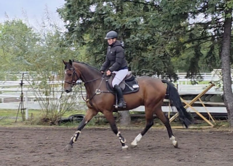 Cedrik est un très joli hongre au caractère bien trempé, avec une excellente aptitude polyvalente. Il est très montable, doté de bons mouvements et, de par sa lignée, possède naturellement beaucoup de potentiel au saut. Lors du saut libre, il peut convaincre par son courage et ses capacités. Il saute avec élégance, précaution et beaucoup de lucidité. Sous le cavalier, il peut également mettre cela en pratique. Il saute déjà un parcours monté et nous l'avons emmené à son premier concours d'entraînement. Il a réalisé un tour sans faute et était presque aussi détendu qu'à la maison. Il est agréablement ambitieux et prend plaisir à l'activité. Le chargement et l'ensemble des interactions étaient également excellents. Un cheval qui apporte simplement de la joie au travail quotidien et qui est polyvalent. Il est également monté sans problème en extérieur. Son caractère et son format font de Cedrik un charmant cheval de selle pour filles ou dames, avec un potentiel pour des niveaux supérieurs. Son frère, par exemple, est déjà placé à 1,40 m. Mais il peut également être envisagé comme partenaire pour des cavaliers de loisir exigeants, en dressage ou même en saut d'obstacles. Il s'entend très bien avec d'autres chevaux et est quotidiennement avec eux dans le paddock. C'est tout simplement un cheval que l'on peut seulement souhaiter. Hongre de 4 ans, 1,68 m Cabo Verde (Christian) x Calato x Corrado De bonnes radios et un examen clinique sont disponibles. Vidéo : https://youtu.be/OdXWvmmOg88?si=Bggi4g3Jm1sclyR9 https://youtu.be/48i5RBrefq4?si=vIT62hQOLHQOmXWK « Vous trouverez également des vidéos, des extraits d'entraînement et d'autres impressions de nos chevaux à vendre sur Instagram : [maresi_lange]. Vous y obtiendrez des informations supplémentaires et un aperçu du développement des chevaux. Videos, training highlights and further impressions of our sales horses can also be found on Instagram: [maresi_lange]. There you will get additional insights and a closer look at the horses’ development. » La description du cheval repose sur des impressions et expériences subjectives de notre part et ne constitue pas un accord de qualité ni une garantie de caractéristiques. L'essai se fait à vos propres risques. Pour la présentation/l'essai du cheval, nous nous permettons de facturer des frais de 30 euros. Ceux-ci seront bien entendu déduits en cas d'achat du cheval.