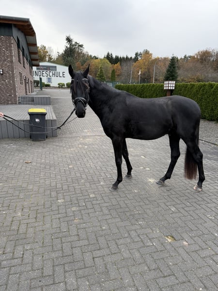 Sehr schöner 3-jähriger Rappwallach von Fürstenball aus einer Scolari Mutter. Erst seit ein paar Wochen unter dem Sattel, super brav und ausgestattet mit drei guten Grundgangarten. Sehr gute Röntgenbilder und absolut fit. Im Preis so günstig weil er gerade angeritten ist und nur in sehr gute Hände verkauft wird. Er ist selbst gezogen und sehr Menschen bezogen. Ein Partner fürs Leben.