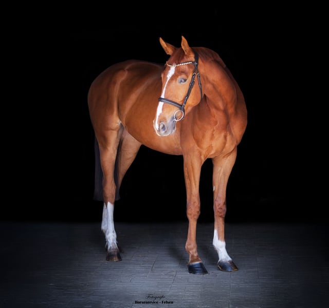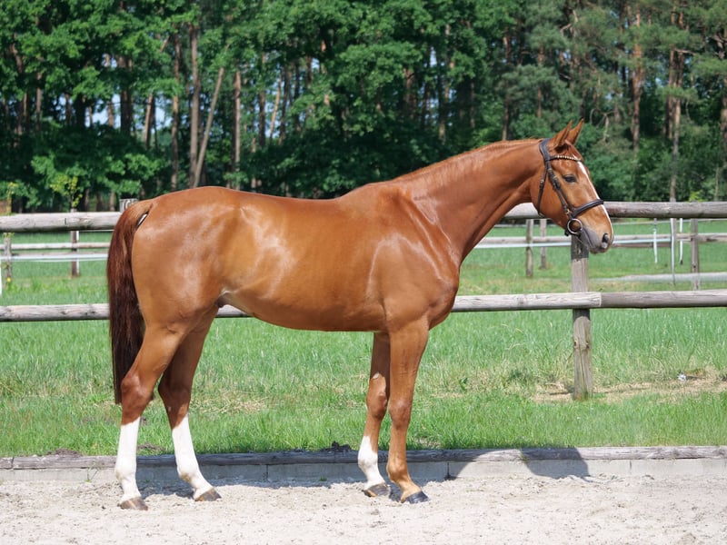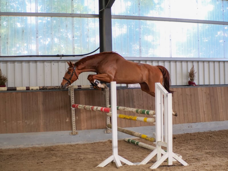 We offer a talented Hanoverian gelding for sale. **Details:** Breed: Hanoverian Gender: Gelding Year of Birth: 2021 Color: Chestnut Height: currently 169 cm Familiar with machines, farrier, and trailer This promising young gelding shows great potential in jumping and has already gained good experience in work and under saddle. He is well-mannered, easy to handle, and has a friendly character. He is familiar with machines, farrier, and trailer loading! He has been gently started under saddle and has not had any bad experiences so far! If you are interested or need more information, we look forward to your message!