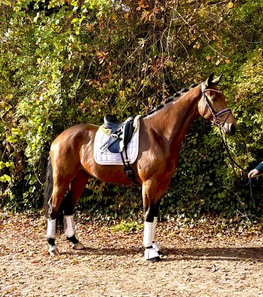 Schicker 4 jähriger Wallach mit besten Reiteigenschaften abzugeben. Drei sehr gute Grundgangarten, dazu besondere Nervenstärke und Leichtrittigkeit zeichnen diesen stets freundlichen und vollkommen unkomplizierten jungen Mann aus. Auch im Umgang vorbildlich. Sehr guter TÜV. 1,70 . Ein wirklich toller Wallach von sehr guter Qualität, auch für die kommende Saison! Bei Fragen bitte per WhatsApp oder telefonisch unter 01602428444 melden .