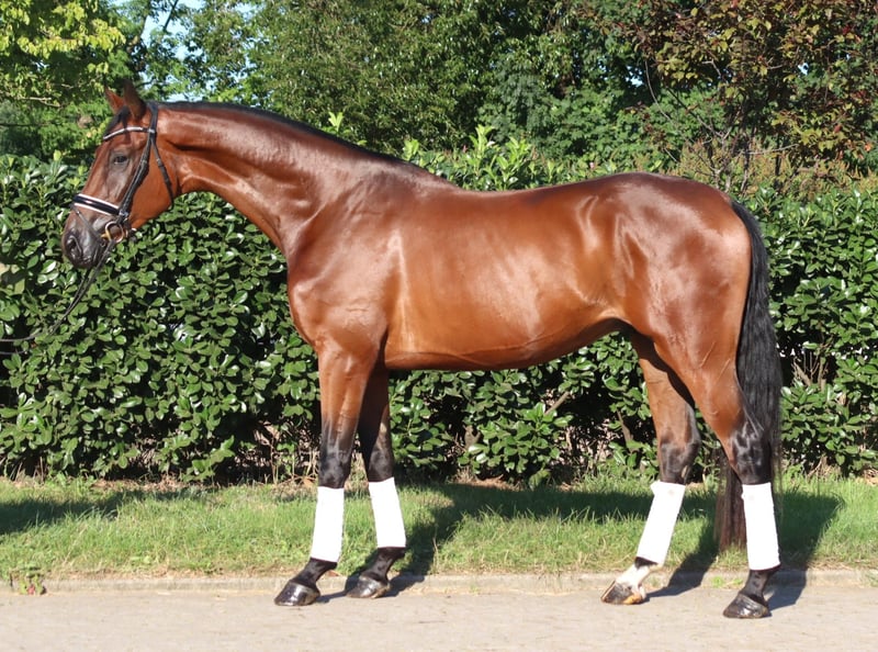 Potro de 3 años, de tipo noble, hijo de Sezuan x Fürst Belissaro, con tres pasos básicos muy buenos, que posee todas las cualidades para el gran cuadrilátero. Es tranquilo en su manejo, aunque aún no ha sido montado bajo la silla. Precio más IVA. Solo consultas por teléfono, no se responderán correos electrónicos.