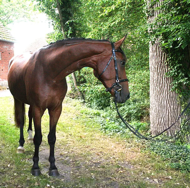 Züchterin verkauft tolles Nachwuchspferd. Gezogen aus einer Serafino/San Remo Stute, Vater Bailador/Benicio ( DE 431316564716, Hengst, 170cm, geb. 14.03.2016 ). Aufgewachsen in einer Hengstherde und seit einem Jahr vorbereitet mit viel Bodenarbeit und Equikinetic (Muskelaufbautraining ) für die Anforderungen des Anreitens. Ein sehr umgängliches, unerschrockenes und gehorsames Pferd. Er kennt Hufschmied, Zahnarzt, Verladetraining, Gelände. Ben Laddy ist seit April 2025 in Ausbildung und wird hier altersentsprechend geritten. Er zeigt sich sehr talentiert und brav. Das Pferd verfügt über drei sehr gute, ergiebige Grundgangarten mit guter Ausbildungsperspektive. Er wird hier sehr verträglich im Offenstall gehalten zusammen mit Stuten und Wallachen. Rundum ein charakterstarkes, schönes und liebenswertes Pferd.