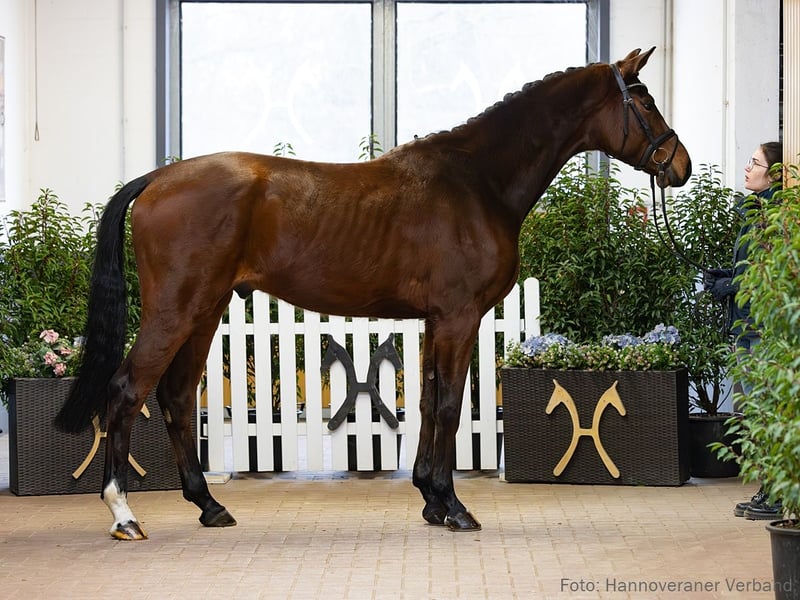 Das Pferd ist ein Verdener Auktionspferd und wird am 18.04.2026 onlive versteigert. Vom 6.04. bis zum 18.04. kann das Pferd jeden Tag beim öffentlichen Training besichtigt und ausprobiert werden. Das Startgebot bei der Versteigerung ist 8.000 Euro. Bildschönes Nachwuchspferd, das sich noch im Reifeprozess befindet. Enrico Caruso zeigt herrliche Ansätze und fordert eine weitere Ausbildung förmlich heraus. Liebevoll aufgewachsen bei seinen Züchtern Ursula und Gerd Lühr in Borgholzhausen, stellt das Züchterhaus mit ihm sein 80. Verdener Auktionspferd. StPr. Bellissima stellte u. a. den gekörten Hengst Lontano v. Londonderry, der mit Birte Flemming in der mittelschweren Klasse des Dressursports erfolgreich war. Ebenso prägen der gekörte Hengst Wolkentanz II v. Weltmeyer (Dressur: intern. S** mit Johannes Westendarp). 1. Generation Auktionspferde: Emely v. Emilio Sanchez (FoVA 2021). 2. Generation Sportpferde Dressur: Florentino 86 v. Fürst Romancier (DRE: M** mit Ronja Schaefer); Sir Sioux v. Santino (DRE: M* mit Lucia Ruch); gek. Hengst Lontano/Lontano 11 v. Londonderry (DRE: M* mit Birte Flemming,Verden 2015). Aufbauprüfungen Dressur: Flavio 64 v. Frascino (DRE: L); Levizzano v. Londonderry (DRE: L,VA 2020); Fürst von Basel v. Foundation (DRE: L); Funkelauge v. Fürstenball (DRE: L). gekörte Hengste: gek. Hengst v. Toto Gold (MS-Handorf 2024). Auktionspferde: Lexington v. Londonderry (VA 2016); Schöne v. Santino (VA 2016); Le Prince v. Londonderry (FoVA 2010); VbPr Schwalbe/Semiramis v. Santino (FoVA 2010); HannPr La Bonita v. Londonderry (FoVA 2009); Starbuck v. Santino (FoVA 2008); La Belle v. Londonderry (FoVA 2006,VA 2013); Lets Dance v. Likoto (FoVA 2003). 3. Generation Sportpferde Springen: Casper L v. Chivas (SPR: 1,30 m mit Vanessa Bölting,Gelände: L,Komb.Vielseitigkeitsprüfung Kl. L - Bundeschampionat 5 jährige 2014). Aufbauprüfungen Dressur: Valero 30 v. Viva Gold (DRE: L,FoVA 2020). Auktionspferde: Bonheur v. Belissimo M (FoVA 2012); Bella Royale/Betty Barclay 14 v. Belissimo M (VA 2014); Romantika/Romantica v. Royal Blend (FoVA 2007); Lindor v. Likoto (FoVA 2004). Bes. Prämientöchter: StPr Lou Wolkentänzerin v. Londonderry; StPr Bellissima v. Brentano II. 4. Generation Sportpferde Dressur: gek. Hengst Wolkentanz II v. Weltmeyer (DRE: int. S** mit Johannes Westendarp,Dressurpf.Bundeschamp.Kl.M 2001,Bundeschampionat f.Reitpferde o.M. 1998,Oldenburg 1997); gek. Hengst Riano/Auheim's Riano v. Rock Forever I (DRE: S** mit Stephanie Dearing,Dressurpferdeprüfung -international- WM 6 jährige Kl. M 2015,Dressurpferdeprüfung -international- WM 5 jährige Kl.M 2014,Vechta 2011); Rosmarin 8 v. Rosentanz (DRE: S** mit Kimberly Herslow); gek. Hengst Ballettmeister v. Brentano II (DRE: S** mit Iryna PANCHENKO,Adelheidsdorf 2006); Right Forever v. Rock Forever I (DRE: S* mit Ingrid Klimke); Belmondo 187 v. Belissimo M (DRE: S* mit Angelika Grest,VA 2015); StPrA Beyonce/Beyonce OLD v. Belstaff (DRE: M mit Sergio NAVARRO VICENTE). Aufbauprüfungen Dressur: StPrA Fiesta Danza/Fiesta Danza OLD v. Fürstenball (DRE: M mit Bianca Nowag-Aulenbrock,Bundeschampionat f. Reitpferde 2015,Finalteilnehmer Bundeschampionat 3j.Reitpferde 2015); Dagobaz 5 v. Da Vinci Code (DRE: L). Besondere Sportergebnisse: gek. Hengst Wolkentanz/Wolkentanz 2 v. Weltmeyer (Bundeschampionat f.Reitpferde o.M. 1994,Verden 1993,HM 1993,Sieger Körung Verden 1993,Bester Hengst des Jahrgangs 1995). gekörte Hengste: gek. Hengst Take That/Take That 8 v. Totilas (Verden 2021,HM 2021: 370.000 €); gek. Hengst v. Fürst William v. Fürst William (Verden 2019); gek. Hengst Be my Hit v. Benicio (Verden 2019,HM 2019); gek. Hengst Don Luxury v. Don Deluxe (Vechta 2018); gek. Hengst v. Spörcken v. Spörcken (Verden 2015,HM 2015: 55.000 €,Prä.Dre. Körung Verden 2015); gek. Hengst v. Sir Donnerhall II (Vechta 2012). Auktionspferde: Luxusliner 2 v. Londonderry (VA 2009). Bes. Prämientöchter: HannPrA Butterfly v. Belissimo M; StPr Samanta Fox v. Sandro Hit; StPr Bonny M v. Brentano II; StPr Bella Donna/Bella Donna 75 v. Brentano II; StPr Weisse Rose v. Weltmeyer (Ratje Niebuhr-Schau Verden 1994,Louis Wiegels-Schau Filsum 1995). 5. Generation Sportpferde Springen: Carlos HH v. Christiano (SPR: 1,35 m mit Vanessa Bölting,VS: int. M mit Vanessa Bölting); Gustavo 11 v. Graf Top (SPR: 1,30 m mit Stephan Engelbert Gieseking); Galando 20 v. Graf Top (SPR: 1,30 m mit Stefan Miß,VA 2008). Sportpferde Vielseitigkeit: Carlos HH v. Christiano (SPR: 1,35 m mit Vanessa Bölting,VS: int. M mit Vanessa Bölting). Aufbauprüfungen Dressur: Webdesigner v. Wind Dancer (DRE: M mit Markus Funk); BezPr Mathilda G/Grossi's Mathilda v. Alcatraz (DRE: L). Aufbauprüfungen Gelände: Catalunia HH v. Conteur (Gelände: L). Besondere Sportergebnisse: Ibikon's Quanto Costa v. Quaterback (Championat f. Reitpferde 2012). Auktionspferde: Gold and Silver v. Graf Top (FoVA 2009); Gilmore Girl v. Graf Top (FoVA 2007); Ginger/Ginger 795 v. Graf Top (VA 2009); Lilly/Liebe v. Londonderry (FoVA 2000). Bes. Prämientöchter: StPr Dynamik v. Dobrock; StPr Lovely v. Ludendorff. Mutter: La Luna Prämierung: 1xIa. ZL: 6/5 Großmutter: Bellissima Prämierung: 4xIa. ZL: 18/13 ZSP: Feldprüfung Reitpferd - Trab 7,00 Galopp 7,00 Schritt 7,00 / Durchschnitt Rittigkeit 7,00 / Durchschnitt Springen 7,50
