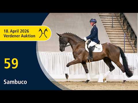 Das Pferd ist ein Verdener Auktionspferd und wird am 18.04.2026 onlive versteigert. Vom 6.04. bis zum 18.04. kann das Pferd jeden Tag beim öffentlichen Training besichtigt und ausprobiert werden. Das Startgebot bei der Versteigerung ist 8.000 Euro. Sambuco ist ein sensibler Dressurnachwuchs, der sich problemlos ausbilden lässt und durch ein ausgezeichnetes Reitgefühl besticht. Aus dieser Linie stammen folgende erfolgreiche Sportpferde: Alessandro v. Andiamo (DRE: S mit Heidemann, Heidemarie), Firefly v. Feuerspiel (DRE: M* mit Sabrina Meier), Quimby v. Quaterman (DRE: M* mit Andrea Schwadtke) und Dana Delany v. Dream of Glory (DRE: M* mit Laura Aromaa). 2. Generation Auktionspferde: Royalti v. Royal Blend (VA 2016). 5. Generation Sportpferde Dressur: Alessandro 13 v. Andiamo (DRE: S mit Heidemann,Heidemarie); Firefly/Firefly 45 v. Feuerspiel (DRE: M* mit Sabrina Meier); Quimby 3 v. Quaterman (DRE: M* mit Andrea Schwadtke); Dana Delany v. Dream of Glory (DRE: M* mit Laura Aromaa). Sportpferde Springen: Salina/Salina 55 v. Salieri (SPR: M mit Brehmer,Heiko). gekörte Hengste: gek. Hengst v. Asgard's Ibiza (MS-Handorf 2020). Auktionspferde: StPr Traya/Traya v. Trapper (VA 1989). Mutter: Rosi ZL: 7/3 Großmutter: Witt Finetta Prämierung: 1xIa. ZL: 12/8