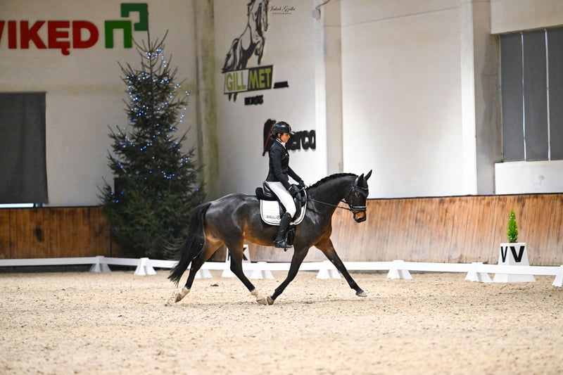 Age / gender: 4 years, gelding Small size – ideal for a smaller rider Pedigree: Friedrich der Grosse × Don Frederico Character: very well-mannered, calm, not flighty Correct, three even gaits Usage: prepared for dressage work, excellent for further education Health status: current veterinary examinations and vaccinations, under regular farrier care Sporting potential – open to further training. I invite you to see the gelding in person – you will fall in love with his pleasant demeanor and subtle work under saddle!