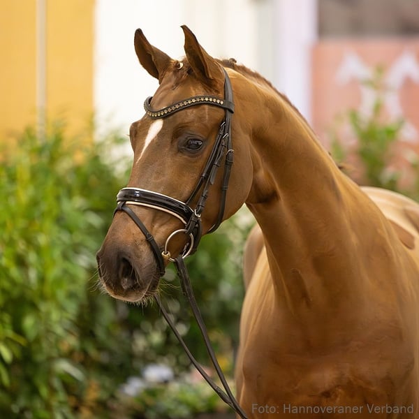 Delphos ist ein typstarker Dressurfavorit mit einem aus vortrefflicher Motorik getragenen Spitzenbewegungsablauf. Hier reift ein klassisches Siegerpferd heran und betritt als erstes Reitpferd des Hengstes Dimaggio Black die Verdener Auktionsbühne. Ihr Mutterstamm wird sportlich vertreten durch den gekörten Hengst Rockabye S v. Revolution (DRE: S* mit Malin Wahlkamp-Nilsson) sowie durch Ascalon v. Arpeggio (DRE: M** mit Kim Laura Jürgens). 1. Generation Auktionspferde: Semino v. St. Emilion (FoVA 2024); Belmondo v. Bon Voyage (FoVA 2020 13.000 €). 4. Generation Sportpferde Voltigieren: Don Bello v. Donnersmarck (Voltigieren: S mit VG Team Schäferhof 2). Aufbauprüfungen Springen: Now or Never 12 v. Newton (SPR: M mit Stephan Lerche). Auktionspferde: Lord Leopold 11 v. Locksley II (FoVA 2009). 5. Generation Sportpferde Dressur: gek. Hengst Rockabye S/Rockabye 3 v. Revolution (DRE: S* mit Malin Wahlkamp-Nilsson,Finalteilnehmer Bundeschampionat 3j.Reitpferde 2020,Bundeschampionat f. Reitpferde 2020,Vechta 2019); Ascalon 44 v. Arpeggio (DRE: M** mit Kim Laura Jürgens). Sportpferde Springen: Lacoretto 2 v. Levernois (SPR: 1,30 m mit Jeremy John Hale). Aufbauprüfungen Springen: Gammon 75 v. Grannox (SPR: L). Auktionspferde: Roache v. Revolution (FoVA 2018: 24.000 €); Lawinia S/Lawinia v. Londonderry (FoVA 2002). Mutter: Soraja ZL: 6/6 Großmutter: Faustina ZL: 1/1 Turniererfolge: DRE: A 1/w. DRE: E 1/3. Das Pferd ist ein Verdener Auktionspferd und wird am 25.01.2026 online versteigert. Vom 12.01. bis zum 25.01. kann das Pferd jeden Tag beim öffentlichen Training besichtigt und ausprobiert werden. Das Startgebot bei der Versteigerung ist 8.000 Euro.