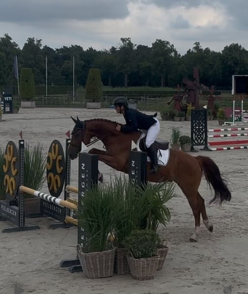 This 5-year-old gelding is still in the early stages of his sporting career. He possesses excellent awareness, combined with a lot of caution and talent. In his two show jumping competitions at class A** level, he was clear and placed. He is looking for a experienced rider who can further develop his skills and help him become a great partner for higher-level competitions. Oki is barefoot, with very good hoof quality, and lives with us in an open stable. He is well-behaved in the terrain, loads easily, and shows no bad habits. However, he is not suitable for beginners or reintegration riders. Further information and videos are available upon request by phone.