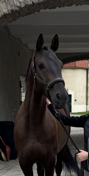 **Verkaufsanzeige: Traumhafter Hannoveraner Wallach zu verkaufen** Zum Verkauf steht ein wunderschöner Hannoveraner Wallach, geboren im Jahr 2020. Mit einem derzeitigen (! Er wird bestimmt noch ein paar Zentimeter wachsen) Stockmaß von 167 cm ist er der ideale Partner für Dressurreiter, die auf der Suche nach einem talentierten und anpassungsfähigen Pferd sind. Aufgrund seines leicht stämmigen Körperbaus deckt er Reiterinnen und Reiter in verschiedenen Größen ab (als Beispiel: Reiterin am Foto/im Video hat eine Größe von 173cm). Seine auffällige schwarzbraune Fellfarbe (im Winter ist er dunkler, im Sommer heller) und sein elegantes Auftreten machen ihn zu einem echten Blickfang. Der Wallach zeigt bereits vielversprechende Ansätze in der Dressur und hat das Potenzial, sich in diesem Bereich weiterzuentwickeln. Er wurde bereits erfolgreich auf Dressur Turnieren vorgestellt und nahm auf mehreren Dressur Kursen auswärts teil. Dabei verhält er sich außergewöhnlich ruhig und nervenstark. Er ist leicht im Genick und sehr fein zu reiten, obwohl er sehr viel Go hat. Der Wallach verfügt über drei top Gangarten! Er hat viel Schwung, ist aber trotzdem angenehm zu sitzen. Er ist brav im Umgang, gut erzogen und zeigt sich sowohl im Training als auch im Gelände kooperativ und motiviert. Auch alleine ausreiten ist kein Problem! Im Sommer wurde er am Reitplatz bei Flutlicht trainiert, dabei ist er unerschrocken und konzentriert, egal ob alleine oder mit mehreren Pferden. Ideal für Reiter, die ein Pferd suchen, das sowohl im Sport als auch in der Freizeit Freude bereitet. Er ist sehr sozial und absolut freundlich zu jedem, egal ob Mensch oder Tier. Des Weiteren verfügt er über einen einwandfreien TÜV! Siehe die Dokumente unten. Er hat weder ein Überbein noch sonst etwas! Kerngesundes Pferd! Bei Interesse oder weiteren Fragen stehe ich gerne zur Verfügung. Besichtigungen sind nach Vereinbarung möglich. Auf Wunsch sende ich gerne mehr Videos zu!