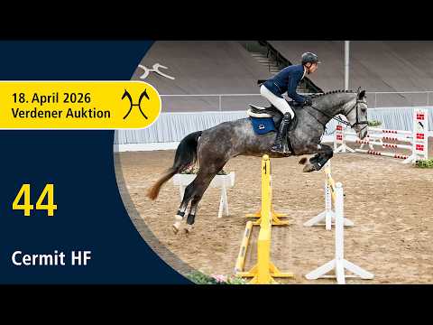 Das Pferd ist ein Verdener Auktionspferd und wird am 18.04.2026 onlive versteigert. Vom 6.04. bis zum 18.04. kann das Pferd jeden Tag beim öffentlichen Training besichtigt und ausprobiert werden. Das Startgebot bei der Versteigerung ist 8.000 Euro. Cermit HF ist im Parcours noch etwas unerfahren, überzeugt jedoch bereits mit viel Geschick und beispielhafter Arbeitsbereitschaft. Mit seiner positiven Einstellung und Leistungsbereitschaft empfiehlt er sich für weitere Aufgaben im Sport. Seine Großmutter Honey stellte sechs Nachkommen im Sport, darunter Deeja von Dancier (Dressur: M-siegreich mit Ronja Papendick). 2. Generation Sportpferde Dressur: Deejay 12 v. Dancier (DRE: M* mit Ronja Papendick). Auktionspferde: Velvet HF v. Viscount (VA 2023); Enjoy FH v. Escudo I (VA 2021); Dalessandro v. Don Frederico (VA 2010). 3. Generation Aufbauprüfungen Dressur: Flintstone W v. Fabriano (DRE: L). 4. Generation Sportpferde Springen: WELLCOME 6 v. Wrede (SPR: M mit STEINEKE,ANGELA). Mutter: Emilia HF ZL: 4/4 Großmutter: Honey ZL: 15/14