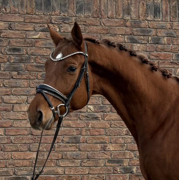 Milagro ist ein schön anzusehender, bewegungsstarker Wallach mit guter Rittigkeit. Er hat jeden seiner Starts mit einer Platzierung abgeschlossen und ist Dressurpferde A siegreich. Er ist nicht guckig oder schreckhaft, gut zu sitzen und einfach durchs Genick zu reiten. Leider hat er Kissing Spines. Das merkt man ihm aber überhaupt nicht an, da er keinerlei Probleme zeigt.