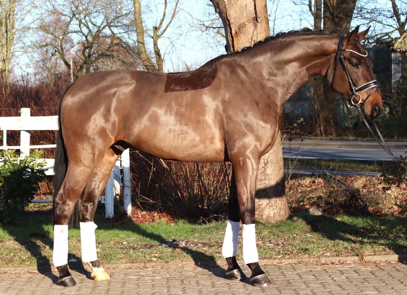 Charismatic 5-year-old gelding by Sir Donnerhall out of Rubin Royal/Weltmeyer, from a successful dam line. The gelding has three very good basic gaits and is a pleasure to ride. He offers all the potential for a successful future. Price plus VAT. Inquiries only by phone, emails will not be answered.