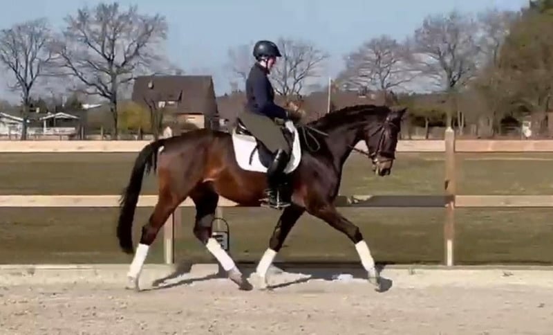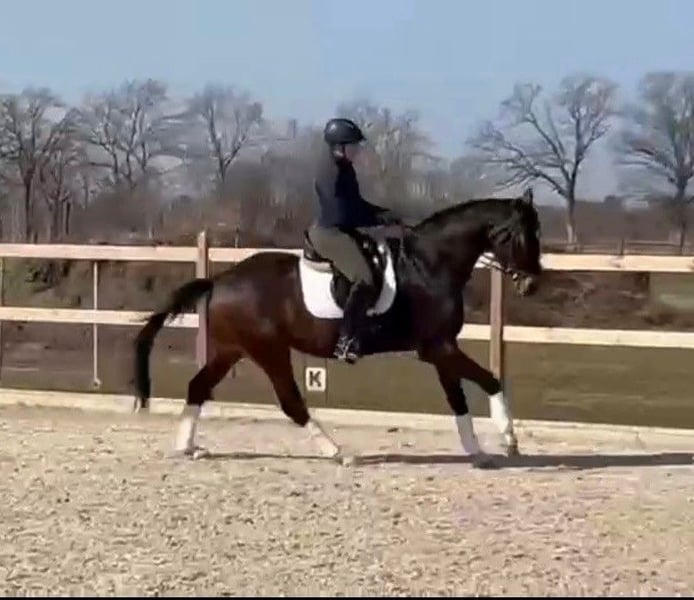 Wir verkaufen unseren selbstgezogenen, 5-jährigen, dunkelbraunen Hannoveraner Wallach von Fusionist x Dancier (ca. 172 cm). Er ist ein sehr hübsches, liebes Pferd mit guten GGA und einem angenehmen Go. Favorel arbeitet gerne mit und versucht, immer alles richtig zu machen. Er ist artgerecht und fürsorglich aufgewachsen, unkompliziert in der Herde und im Umgang, natürlich schmiede- und verladefromm, regelmäßig geimpft, entwurmt und beim Zahnarzt gewesen. Da er leider einen Befund hat, der ihn aber nicht beeinträchtigt (voll belastbar) und angefangen hat, in der Box zu Koppen, verkaufen wir ihn günstig, aber auch nur in gute Hände.