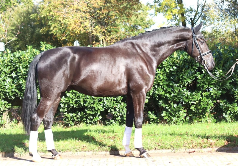 Bewegungsstarker 5 jähriger Wallach von Sezuan x Sir Donnerhall. Er besticht mit 3 hervorragenden Grundgangarten und sehr guter Rittigkeit. Spät angeritten bringt er alle Vorraussetzungen für das große Viereck mit. Direkt vom Aufzüchter zu verkaufen. Preis zzgl. Mwst. Anfragen nur telefonisch, E-mails werden nicht beantwortet.