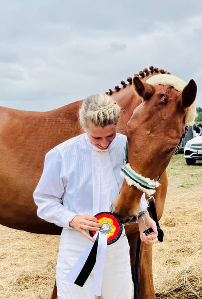 Dieser charmante, lernfreudige, Hannoveraner Fuchswallach, namens Villie Vilados, aus dem ersten hervorragenden Jahrgang des prämierten MP Vivaldos, aus der Love Story (Lauries Crusador XX) mit einer ausgezeichneten Leistungsgenetik, ist stetig bestrebt, sich von seiner besten Seite im Umgang zu geben. Mit bestem Rötgenbildern und vom Vet. mit o.B. ausgestattet, ist er offen freundlich und baut gerne eine Bindung zu seinem Menschen auf. Durch seinen guten und korrekten Charakter, konnte er eine sichere, solide und harmonische Grundausbildung genießen, welches dem neuen Besitzer in jedem Fall zu Gute kommt. Villie ist schonend und spielerisch eingeritten und A-fertig ausgebildet und steht bereits sensibel am Schenkel für Seitengänge/ L-Niceau. Sein blutgeprägtes Erscheinungsbild und seine Größe (derzeit 175cm) wurden beim 4-jährigen Ein-/Anreiten berücksichtig, auf das er Freude am Tun mit Menschen hat und behält. Villie ist bereits als Absetzen zu uns gekommen und routiniert in jeglichen, menschlichen Umgang. Er ist Herdenbetrieb und Koppel gewohnt, ist Wasser-/ schmiede- und verladefrom und es kann von ihm, nahtlos, aus seinen Entwicklungsphasen berichtet werden. Villie Vilados ist lässig in Begegnung mit Hunden, sowie Landwirtschaftlichen Fahrzeugen. Selbst in die Ostsee ist er als 3 Jähriger, als Handpferd vertrauensvoll mit rein spaziert. Durch seine geschlossene Größe und Farbe ist Villie Vilados ein Blickfang im Dressur Viereck und ist bereits erfolgreich in A-Dressurpferdeprüfung mit Platzierungen nach Hause gekommen. Villie soll nun zu einem neuen Herzensmenschen finden, auf das er weiter gefördert werden kann.