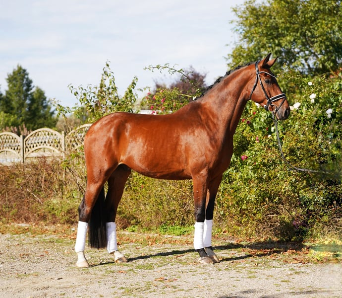 À vendre, un magnifique cheval de grande taille, fils de Friedrich der Große. Ce hongre a été doucement monté chez nous et a toujours fait preuve d'obéissance, d'attention et de volonté d'apprendre. Il se distingue par ses très bonnes allures de base, beaucoup d’expression et une silhouette harmonieuse sous la selle. Un excellent jeune cheval avec ce petit quelque chose en plus, qui séduit tant par sa montabilité que par son caractère. En manège, il est amical et facile à gérer. Dans le troupeau, il se montre équilibré et pacifique chez nous. Appels uniquement – pas de mails ! Prix hors TVA. Informations sans garantie.