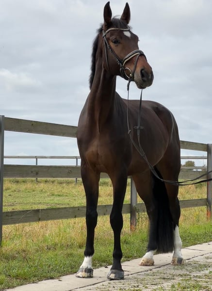 Vaderland x Weltmeyer x Don Frederico - Born in 2021 - Gelding - Dark brown - Height: 17.5 hh - Training level: Dressage Horse Level A - Has competed in Dressage Horse Level A competitions - Self-bred, first-hand rider - Shoeing, front shoes - Videos and photos will be sent via WhatsApp upon serious interest