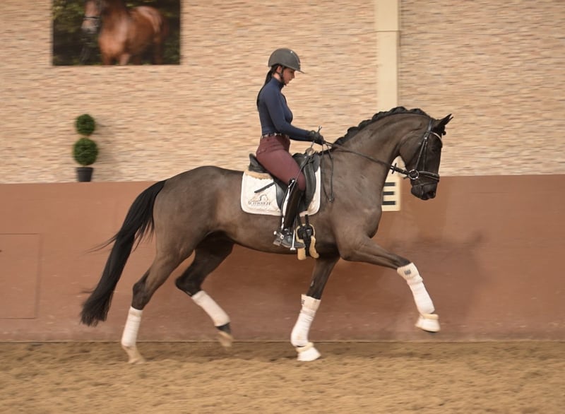 Liebe Interessenten, Für Terminvereinbarungen Probereiten senden Sie mir bitte eine WhatsApp. Für weitere Fragen bin ich tagsüber per WhatsApp erreichbar, telefonisch erreichen Sie mich am Besten zwischen 16 und 19 Uhr. Ich freue mich auf eine Kontaktaufnahme www.angelina-devittorio.de ⭐️DayCloud⭐️ Alter: 5 Jahre (2021) Größe: ca 1,75 m Abstammung: Dynamic Dream x Sir Donnerhall Ausbildungsstand: Dressurpferde A AKU: Gute Röntgenbilder vorhanden Zum Verkauf steht ein hochveranlagtes, bildschönes Dressurpferd mit bester Abstammung – ein fünfjähriger Sohn des Dynamic Dream. Er überzeugt mit drei überragenden Grundgangarten, einer außergewöhnlich positiven Arbeitseinstellung und einem absolut zuverlässigen Charakter. Der Wallach befindet sich derzeit auf sicherem DrPf A Niveau und die ersten L Lektionen wurden spielerisch begonnen . Trotz seiner beeindruckenden Präsenz ist er super kopfklar, dabei stets motiviert und mit genügend Go ausgestattet. Dadurch eignet er sich ideal für jeden Amateur ab gutem A/L Niveau . Hier reift ein überragendes Nachwuchspferd mit hervorragender Perspektive für das große Viereck heran . Ein Pferd mit Zukunft, das durch Ausstrahlung, Rittigkeit und Charme gleichermaßen überzeugt – ein echter Gewinn für jeden ambitionierten Dressurreiter! ⚜️ www.angelina-devittorio.de ⚜️Tel: 0171-3438949 ⚜️a.devittorio@web.de ⚜️https://www.ehorses.de/angelinadevittorio Facebook und Instagram Angelina De Vittorio