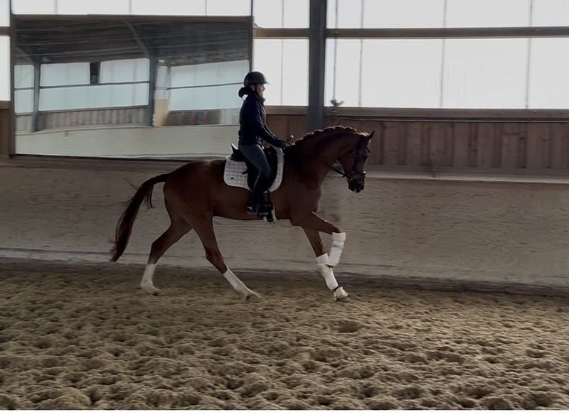 Dieser fünfjährige Wallach verkörpert modernes Sportpferdedesign in seiner schönsten Form: langbeinig, großrahmig und mit einer absolut ansprechenden Silhouette ausgestattet. Bereits jetzt überzeugt er durch seine sehr gute Rittigkeit und seine unkomplizierte Art. Er ist brav im Umgang, angenehm unter dem Sattel und gibt seinem Reiter jederzeit ein sicheres Gefühl. Damit eignet er sich sowohl für ambitionierte Reiter als auch für Reiter, die ein hochwertiges Nachwuchspferd suchen. Seine Bewegungen sind modern, elastisch und mit viel Perspektive ausgestattet. Dabei bleibt er stets klar im Kopf, zeigt sich konzentriert, lernwillig und kooperativ – Eigenschaften, die ihn zu einem idealen Partner für die weitere Ausbildung machen. Aufgrund seiner Größe wurde er schonend und altersgerecht angeritten und befindet sich nun auf einem sehr guten Weg. Für sein Alter macht er einen wirklich überzeugenden Job und bringt sowohl in den Grundgangarten als auch im Interieur beste Voraussetzungen für die Zukunft mit. Auch seine Abstammung unterstreicht seine Qualität und rundet das Gesamtbild dieses vielversprechenden Nachwuchspferdes ab. Ein Pferd, das nicht nur durch seine Optik beeindruckt, sondern vor allem durch seine Einstellung, seine Leistungsbereitschaft und sein Entwicklungspotenzial überzeugt. Standort: Rosenheim Weitere Verkaufspferde sind vorhanden – vielleicht ist auch Ihr passendes Pferd dabei. Fotos werden in den nächsten Tagen ergänzt, sobald sich die Wetterverhältnisse verbessert haben.
