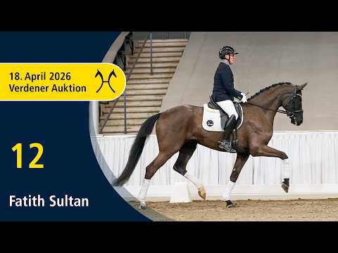 Das Pferd ist ein Verdener Auktionspferd und wird am 18.04.2026 onlive versteigert. Vom 6.04. bis zum 18.04. kann das Pferd jeden Tag beim öffentlichen Training besichtigt und ausprobiert werden. Das Startgebot bei der Versteigerung ist 8.000 Euro. Fatith Sultan - ein ehemaliges Verdener Auktionsfohlen kehrt als gereiftes Reitpferd auf die Auktionsbühne zurück. Dieser pompös auftretende Dressurwallach überzeugt mit drei grundsoliden Grundgangarten, die ihm den Weg in höhere Klassen ebnen. Mit Anna Mitter belegte er bereits den zweiten Platz in einer Reitpferdeprüfung und folgt damit sporterfolgreichen Verwandten wie Flagranti v. Fürst Heinrich aus der Wiener Star (S-erfolgreich mit Tom Berg, VA 2009). Weiteres Aushängeschild der Mutterlinie ist Zasou M v. Zhivago (DRE: int. S* mit Maya Link). Sportname: Fatih Sultan Sporterfolge: RPF: 1/2. 1. Generation Auktionspferde: Fearless Girl L v. For Romance I (FoVA 2022); Fine Romance L v. For Romance I (FoVA 2019). 2. Generation Sportpferde Dressur: Flagranti 31 v. Fürst Heinrich (DRE: S* mit Tom Berg,VA 2009,FoVA 2005); Dream-Boy L v. Dancier (DRE: M* mit Saskia Langfermann). Aufbauprüfungen Dressur: Silas 208 v. Swarovski (DRE: L); DJ Nymphenburg v. Don Frederico (DRE: L,VA 2010). Auktionspferde: Da Vittorio v. Dancier (FoVA 2012). 3. Generation Sportpferde Dressur: Fan Fabilo v. Fürst Heinrich (DRE: M* mit Annemarie Wahsner). 5. Generation Sportpferde Dressur: Wolkensturm 2 v. Wolkenstein II (DRE: S** mit Mathias Kornes); Dejavue 53 v. Don Frederico (DRE: M** mit Linda Gustedt); Mondrian 17 v. Matcho (DRE: M mit Kock,Kerstin); Muscadet S v. Matcho (DRE: M mit Vennemann,Petra). Sportpferde Springen: Gambler F v. Gotthardsen (SPR: M mit Friedhoff,Thomas). Auktionspferde: Hot Royal v. Hochadel (VA 2010); StPr Mara/Maybe 27 v. Matcho (VA 1995,VA 1994). Bes. Prämientöchter: StPr Walara/Woyke v. Wolkenstein II. Mutter: Dorina L Prämierung: 1xIa. ZL: 6/5 ZSP: Feldprüfung Reitpferd - Trab 7,00 Galopp 7,50 Schritt 6,00 / Durchschnitt Rittigkeit 7,25 / Durchschnitt Springen 6,25 Großmutter: Wiener Star ZL: 12/11 ZSP: Feldprüfung Reitpferd - Trab 8,00 Galopp 7,00 Schritt 6,00 / Durchschnitt Rittigkeit 7,00 / Durchschnitt Springen 6,50