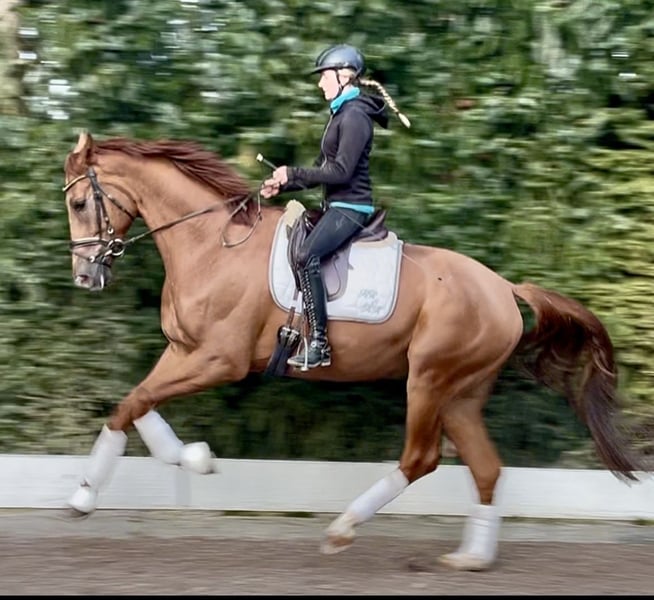 Elegante Hannoveraanse ruin – ideaal voor ambitieuze dressuurruiters! Deze prachtige, grootgebouwde vosruin werd geboren in 2021 en valt op door zijn indrukwekkende gangen en zijn overtuigende rijbaarheid. Zijn leergierigheid maken hem tot een geweldige partner voor de ambitieuze ruiter in de grote bak. De ruin is gezond, regelmatig gevaccineerd en op een diervriendelijke manier opgevoed in een van de beste fokbedrijven van Duitsland. Hij toont zich in de omgang vriendelijk en zeer lief. Hij kent dagelijkse weide- en paddockgang, evenals het halstertrainingsproces. Zijn bewegingen zijn elegant en ritmisch, wat hem perfect maakt voor de dressuurring. Bij interesse of voor meer informatie sta ik graag tot uw beschikking. Bezichtiging en proefritten zijn in overleg mogelijk. Een video kan via WhatsApp worden gestuurd. Een paard met veel potentieel wacht op een nieuwe, betrokken ruiter!