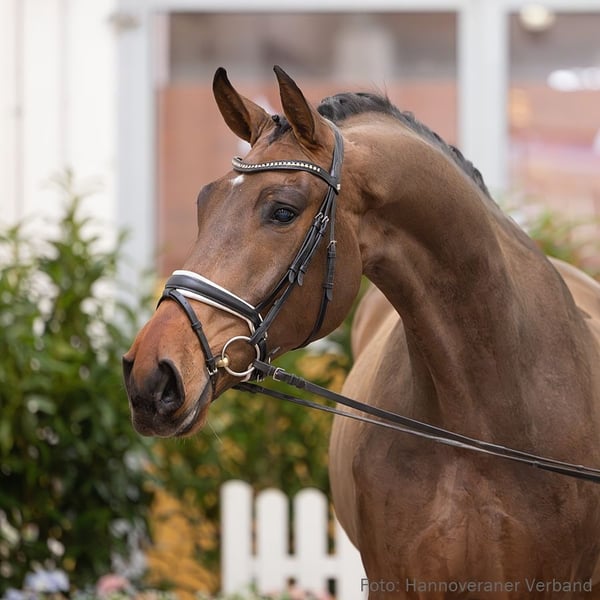 Trotz seiner Größe beeindruckt Sir Sherlock mit geschmeidigen Bewegungsabläufen und bemerkenswertem Reitkomfort, ein Pferd, das sich besonders für den großen Reiter eignet. Seine Halbgeschwister Flora D v. Floratio (DRE: M mit Sabrina Arnold-Schwandner) und Franziskus Smart One v. Franziskus (DRE: M mit Hannah Carina Kraus) haben sich bereits erfolgreich im Sport etabliert. 1. Generation Sportpferde Dressur: gek. Hengst Johny Johnson/FBW Johny Johnson v. Johnson (DRE: S* mit Anika Vogt,München-Riem 2019); gek. Hengst FBW Löwenherz v. Lingh (DRE: S* mit Holger Plogsties,Championat f. Reitpferde 2016,Championat f. Reitpferde 2016,München 2015); Flora D v. Floratio (DRE: M* mit Sabrina Arnold-Schwandner); Franziskus Smart one v. Franziskus (DRE: M* mit Hannah Carina Kraus). Aufbauprüfungen Dressur: Waitana 8 v. Fürst Romancier (DRE: L); Dielaura/Dielaura MZ v. Dancier (DRE: L); For Future/For Future 12 v. Fürst Romancier (DRE: L). Aufbauprüfungen Gelände: HannPrA Fortuna Royal/Fortuna Royal 2 v. For Romance I (Gelände: L*,Herwart von der Decken-Schau Verden 2020). Auktionspferde: Flotte Deern v. Frascino (FoVA 2018). Bes. Prämientöchter: HannPrA Vitalia v. Vitalis (Herwart von der Decken-Schau Verden 2025); HannPrA Vergißmeinnicht v. Valverde (Herwart von der Decken-Schau Verden 2025). 2. Generation Auktionspferde: Wilka/Wonderwall 2 v. Wolkentanz (VA 2004). Bes. Prämientöchter: StPr Bellevue/Bellevue 82 v. Beluga. 3. Generation Sportpferde Dressur: Esta/Extra dry v. Eisenherz I (DRE: Grand Prix mit Rhode,Philipp,Dressurprüfung - Grand Prix Special 2002,Dressurprüfung - Grand Prix Special 2001,Dressurprüfung - Grand Prix Special 2001,Dressurprüfung - Grand Prix 2001,Dressurprüfung - Grand Prix Special 2001,Dressurprüfung - Grand Prix 2001,Dressurprüfung - Grand Prix Special 2001,Dressurprüfung - Grand Prix 2001,VA 1992); Elano 12 v. Eisenherz I (DRE: M* mit Melanie Jankord); Weltfürst 2 v. Weltmeyer (DRE: M mit Vering,Simone). Bes. Prämientöchter: StPr Erle v. Einstand. 4. Generation Sportpferde Springen: Fox-Trott v. For Pleasure (SPR: 1,50 m mit Meyer,Jasmin,Deutsche Meisterschaftswertung-JR.Spr.S*** 2003,Deutsche Meisterschaftswertung-Jun.Spr.M 2002); PETROCELLI 5 v. Partisan (SPR: S mit BETTINGER,WILHELM); Anmut/ANMUT 43 v. Absatz (SPR: S mit BENTZIEN,ECKHARD); PIK SOLO 2 v. Pik König (SPR: M mit CLAUS,DIETER); Partnerin/PANJA 38 v. Partisan (SPR: M mit HAEUSSLER,JOCHEN). Auktionspferde: PAPA GEORGE 2 v. Pik König (VA 1986). Mutter: Bellevue Prämierung: 1xIa. ZL: 20/16 ZSP: Feldprüfung Reitpferd - Trab 7,00 Galopp 8,00 Schritt 7,00 / Durchschnitt Rittigkeit 7,50 / Durchschnitt Springen 7,50 Großmutter: Lavendel ZL: 5/4 ZSP: Feldprüfung Reitpferd - Trab 7,00 Galopp 7,00 Schritt 7,00 / Durchschnitt Rittigkeit 7,00 / Durchschnitt Springen 6,00 Das Pferd ist ein Verdener Auktionspferd und wird am 25.01.2026 online versteigert. Vom 12.01. bis zum 25.01. kann das Pferd jeden Tag beim öffentlichen Training besichtigt und ausprobiert werden. Das Startgebot bei der Versteigerung ist 8.000 Euro.