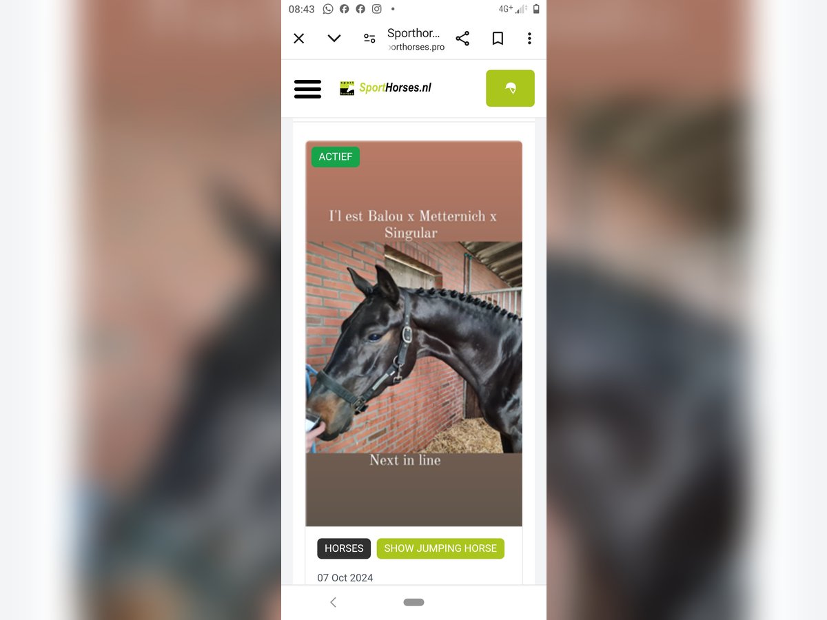 Ruin with quality, competed as a 2.5-year-old in the 3rd class with free jumping. What more could you wish for? Ready to mount and ride away. Videos available on YouTube: bc-stables.nl info 📞 +31 620030412 Price excluding VAT