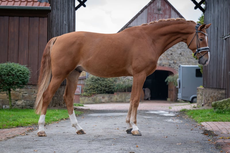 ⚜️ For Sale ⚜️ • Gelding • 2019 • Chestnut • Fürst Wilhelm / Belissimo • X-rays available Charming gelding with a Barbie look. Super easy-going gelding ready to ride. Uncomplicated in handling and under saddle. He is familiar with riding in the arena, outdoors, and on trails. Has been presented at competitions a few times. We wish for him to find a wonderful new home. If interested, please contact 0173/9954104 On vacation from October 15th to October 25th, 2025!!!! Unfortunately, no viewings possible during this time!!