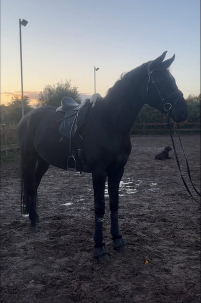 On behalf of a client, a strikingly beautiful 6-year-old gelding is seeking a new home. The gelding is 6 years old and approximately 16.4 hands high. He has already achieved placements in Dressage Horse Level A and A Dressage and is currently progressing playfully towards Level L. He is completely fearless, calm, and has an excellent work ethic. Occasionally, he nips, but this behavior is very rare and has only been observed a few times. Videos can be sent upon request to 015228865369.