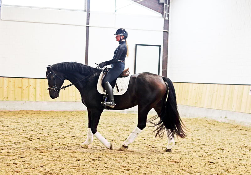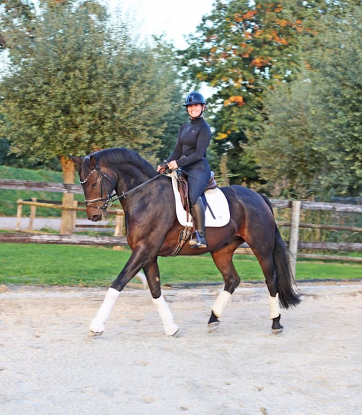 Dieses Bild von einem Pferd zucht seinen Herzensmenschen. Bereits L platziert überzeugt dieser super schicke Kerl mit 3 sehr guten GGA und einem dem Menschen sehr zugewandten Charakter. Er möchte immer dabei sein und freut sich über jede Art der Zuwendung. Er ist problemlos in der Box mit täglichem Weidegang zu halten, kennt aber seit seiner Geburt auch Offenstallhaltung. Er kennt Ausritte genau so wie Stangenarbeit und kleine Sprünge. Er wird hier auch mit Pad geritten und macht das sehr artig. Er läuft bisher immer ohne Eisen da keine notwendig waren. Bei seiner Besitzerin war verladen um zur Halle zu fahren an der Tagesordnung. Gern senden wir Ihnen ein Video : 0177 275 9886 Weitere Infos auch unter: https://www.instagram.com/s/aGlnaGxpZ2h0OjE4MTc0ODc4NjE0MzU4MDAz?story_media_id=3746071437309122263_7420643624&igsh=OWRua2VkeXV3ZTY2