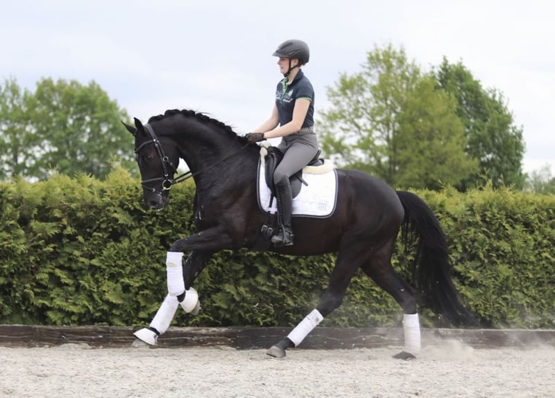 Een indrukwekkende Hannoveraanse ruin, geboren in 2020. Deze prachtige zwarte hengst valt op door zijn elegante verschijning en opvallende voorhandmechaniek. Een ruwe diamant die gevoelvol geslepen moet worden. Hij toont groot potentieel in de dressuur en is al voorzichtig opgeleid. Met zijn vriendelijke karakter en werkplezier is hij zowel geschikt voor de ambitieuze amateur als voor de professional. Bij interesse en voor meer informatie kijken wij uit naar uw contact.