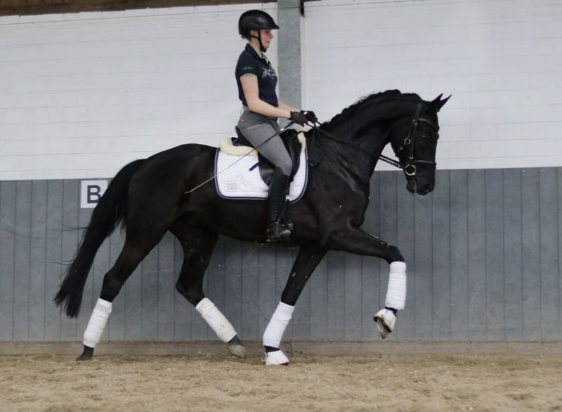 Un imponente castrone hannoveriano nato nel 2020, questo bellissimo cavallo nero colpisce per il suo aspetto elegante e per la sua sorprendente meccanica anteriore. Un diamante grezzo che dovrebbe essere lucidato con sensibilità. Mostra un grande potenziale nel dressage ed è già stato addestrato con delicatezza. Con il suo carattere amichevole e la sua disponibilità al lavoro, è adatto sia a dilettanti ambiziosi che a professionisti. Se siete interessati e desiderate ulteriori informazioni, non esitate a contattarci.