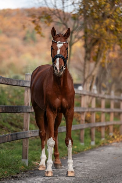 🎀 Zembee Aye AMH (DMJ Zealand) 🎀 Exceptional 5-Year-Old Hanoverian Gelding with a Golden Heart destined for top-level, also suitable for experienced children Age: 5 years (2020) Height: approx. 1.75 m Lineage: Zoom (Blue Horse Zack) x Aston Martin (Monteverdi) Training level: Placed in Dressage Horse A & L, started M (youngster) X-ray: Clear X-Ray images from this year available LOCATION: 976 31 Vlkanová (Slovakia) Zembee Aye AMH (DMJ Zealand) is a beautifully colored 5-year-old Hanoverian gelding who combines elegance, power, and an outstanding temperament. With his impressive presence and expressive movement, he is perfectly suited for riders aiming for the higher levels of dressage or those seeking a reliable and versatile partner for dressage or the jumping arenas. Competed successfully at 2nd Level Dressage (youngster) and training towards 3rd Level (youngster, clean changes), he shows remarkable willingness to learn and natural talent for extension. His balanced gaits, uphill canter, and rhythmic trot make every ride a pleasure. By the outstanding stallion Zoom (Blue Hors Zack) — known for producing rideable offspring with exceptional movement and trainability. Out of mare DMJ Amazing Grace, sired by the Grand Prix Trakehner stallion Aston Martin and descending from the famous Lauries Crusador xx damline, which also produced the legendary Wolkenstein I–III and Brentano I–II. This pedigree combines modern type, elegance, and proven performance genetics at the highest level. Dam line: https://www.horsetelex.com/horses/pedigree/1622329/dmj-amazing-grace Sire line: https://www.horsetelex.com/horses/pedigree/1623095/zoom Foal video: https://www.youtube.com/watch?v=L-twHc4O0Aw You’re welcome to reach out via WhatsApp at any time for questions or to arrange a trial ride. I’ll be happy to hear from you! 🎀 Tel: +421 950 522 899 🎀 amy@equinibrium.sk