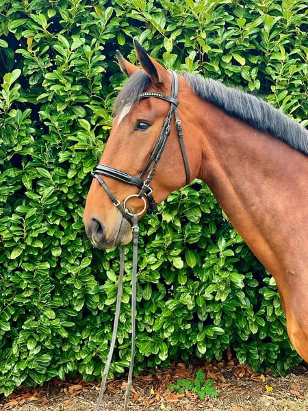 Zum Verkauf steht ein 6-jähriger Wallach von Ogano Sitte/Embassy/Singular Joter. Er hat ein Stockmaß von 1,79 m. Olympic Sitte überzeugt mit seiner enormen Spungqualität und seinem Vermögen. Er ist immer motiviert und geht immer mutig an neue Aufgaben heran. Er wurde schonend 4-jährig angeritten und hat die ersten Turniereerfahrungen gesammelt. 5-jährig hat er nun Springpferde A und L mit Noten bis zu 8,5 gewonnen. Nicht nur sportlich weiß Olympic zu überzeugen, denn er ist im Umgang und beim Reiten ein wahrer Kumpel. Er ist immer brav und motiviert. Auch ein schwächere Reiter ist für ihn kein Problem. Trotz seiner Größe ist er sehr leichtrittig. Im Gelände ist er ebenfalls brav, egal ob alleine oder in der Gruppe. Aufgrund seiner Größe und seinen ruhigen, ausgeglichen Charakter könnten er sicherlich auch ein tolles Voltigierpferd sein. Ein guter TÜV von 2023 liegt vor.