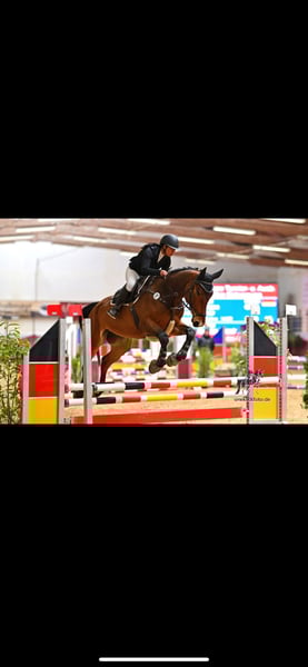 Im Auftrag: Zum Verkauf steht ein 6-jähriger großrahmiger Hannoveraner- Wallach Abstand von Figari (ca. 180cm), der bereits mit Amateur erste Platzierungen in Springpferdeprüfungen der Klasse A** vorweisen kann. Er überzeugt mit seiner ruhigen, ausgeglichenen Art im täglichen Umgang sowie mit Übersicht und Vermögen am Sprung. Trotz seiner Größe ist er angenehm zu reiten und gibt dem Reiter ein sicheres Gefühl. Er ist besonders brav im Umgang – auch mit Kindern – und zeigt sich stets geduldig und verlässlich, egal ob im Stall, beim Führen, Putzen oder Reiten. Steht zurzeit mit einem Wallach zusammen in einem kleinen Offenstall. Kennt aber auch Box - mit täglichen Koppelgang. Er ist regelmäßig entwurmt und geimpft. Zähne wurden im Frühjahr 2025 frisch gemacht Keinerlei Unarten Probereiten ist jederzeit gegen eine Gebühr von 30@ möglich. Dies wird natürlich auf den Kaufpreis angerechnet. PLATZ VOR PREIS!