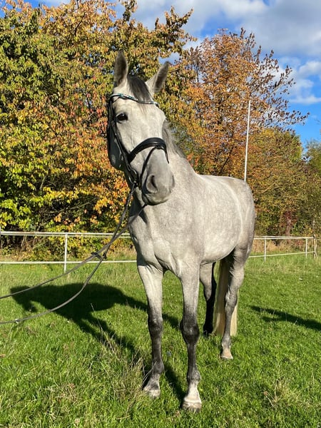 Stylish 6-year-old Hanoverian gelding with excellent pedigree and potential for sale. Approximately 185 cm tall. Diacontinus x Chilento x Coriano. He has been in my possession for two years and was backed at age 4, but due to lack of time, he has not been extensively promoted. He is well-behaved under saddle, but still at the beginning of his training and requires more time and consistent schooling. As I no longer have the time to further develop him and he is too strong for my daughter, we are looking to sell him. Due to his age and size, he is not suitable for beginners. Test rides are only possible for experienced riders. X-rays from 2023 are available. He underwent a chip operation in autumn 2023. In handling, he is uncomplicated, very sweet, shoe- and loading-friendly. Under saddle, he is very sensitive despite his size.