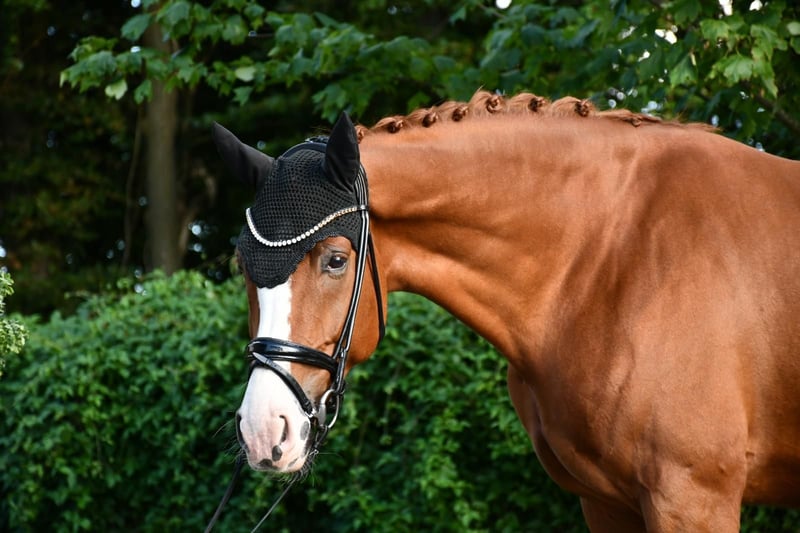 Charming Transition Horse by Secret x Quaterhall For sale is a 6-year-old chestnut gelding with excellent basic prerequisites for dressage. He impresses with three good basic gaits, particularly noteworthy is his uphill canter. In daily handling, he is absolutely uncomplicated, friendly, and reliable. He loads without any issues, even alone, is well-behaved with the farrier, and is always pleasant to handle – whether at shows or out in the field. A horse that leaves nothing to be desired in terms of character and is up for any fun. He can also be easily handled by less experienced riders and is perfectly suited as a transition horse. Under saddle, he works with great willingness to learn and is always responsive and cooperative. He is currently placed in A* and A** dressage and impresses both at competitions and in training with his positive work ethic and pleasant riding sensation.