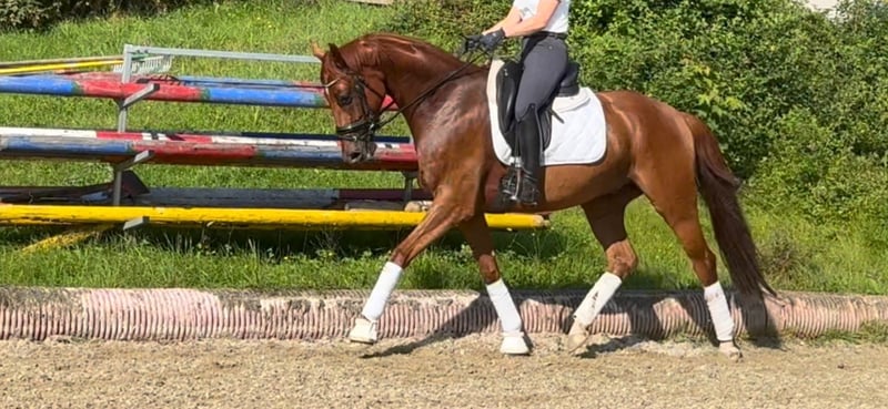 Zum Verkauf steht ein kompakter 6 jähriger Hannoveranerwallach von Finnigan aus einer Laurie’s Crusador Mutter. Er befindet sich auf dem Weg zu L Dressur, ist brav im Umgang und beim Reiten. Aufgrund seiner Allergie ist dieser liebe Wallach weit unter Wert abzugeben. Bei entsprechender Haltung und Fütterung hat er keinerlei Einschränkungen beim Reiten. Videos auf Anfrage. Bei ernsthaftem Interesse gerne eine WhatsApp Nachricht schicken.