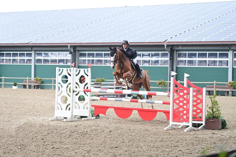 Tony is a kind, honest gelding with a very good mentality and an easy, rideable way of going. He is straightforward to ride, willing in his work, and gives his rider a confident feeling both on the flat and over fences. He is not spooky and is uncomplicated in the ring. Tony is suitable for a competent amateur, junior, or rider looking for a reliable competition partner. In daily handling, Tony is very pleasant and easy: • uncomplicated in the stable • good to shoe, clip, and transport • sensible in new surroundings He would be ideal for someone looking for a safe, honest horse to enjoy the sport, whether for regular competition or further development.